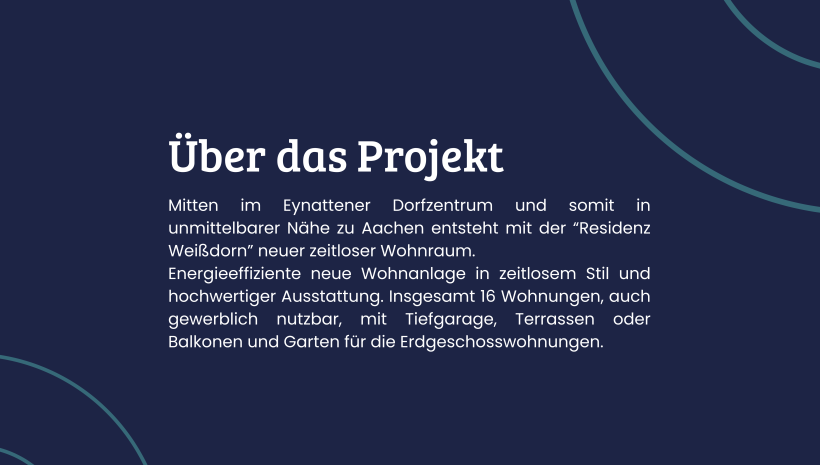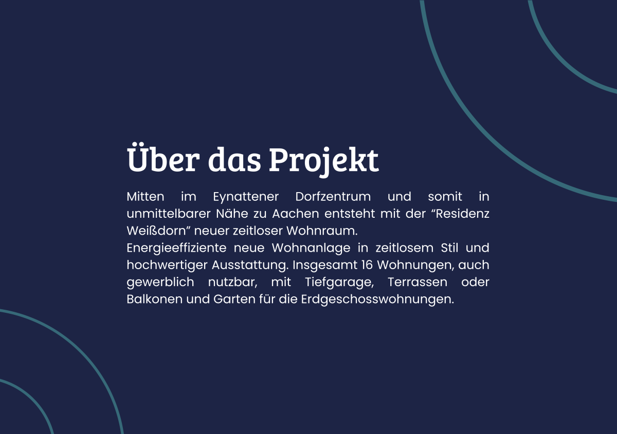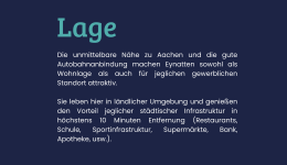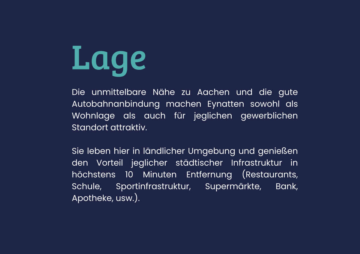 Wer in der Residenz Weißdorn eine Wohnung kaufen möchte, profitiert von einer perfekten Balance aus ländlicher Idylle und städtischer Nähe. Dank der unmittelbaren Nähe zu Aachen und der hervorragenden Autobahnanbindung sind Sie bestens vernetzt. In nur wenigen Minuten erreichen Sie alle Annehmlichkeiten des täglichen Lebens, während Sie dennoch die Ruhe und das Grün der Umgebung genießen.
