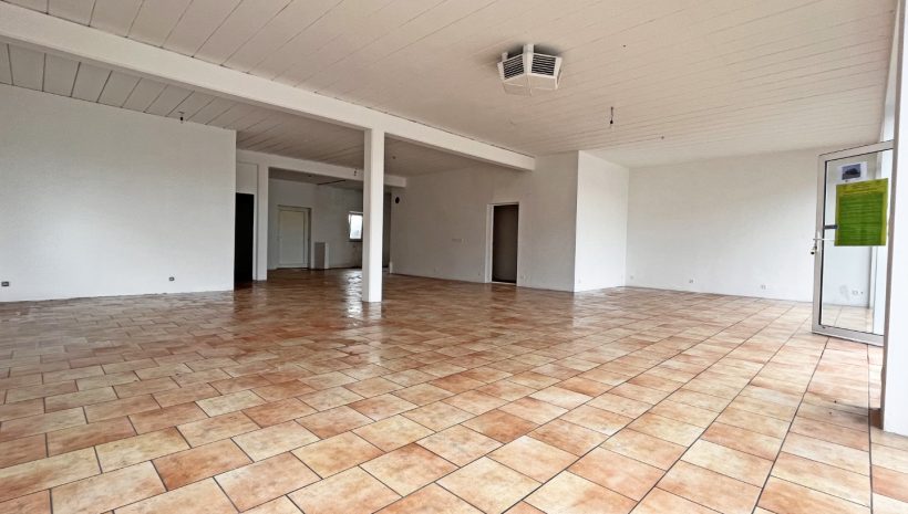 Immobilie mit Gewerbe/Bürofläche auf 142M² im EG/ Lagerraum von 145M² auf -1 und 2 Duplexwohnungen von 82 und 86M² mit jeweils 2 Schlafzimmer, Photovoltaïkanlage. Zusammensetzung: Erdgeschoss: Geschäftsfläche mit Sanitärraum, Kundenparkplatz an der Vorderseite, seitlich eine Einfahrt mit Eisentor zur Terrasse und zum Garten mit Gartenhaus. 1.u 2.Etage: gemeinsamer Eingangsflur, 2 Duplexwohnungen mit jeweils auf Niveau1; Diele, offener Wohnraum mit eingerichteter Küche, Bad, 1 Schlafzimmer und im Obergeschoss: das Elternschlafzimmer.