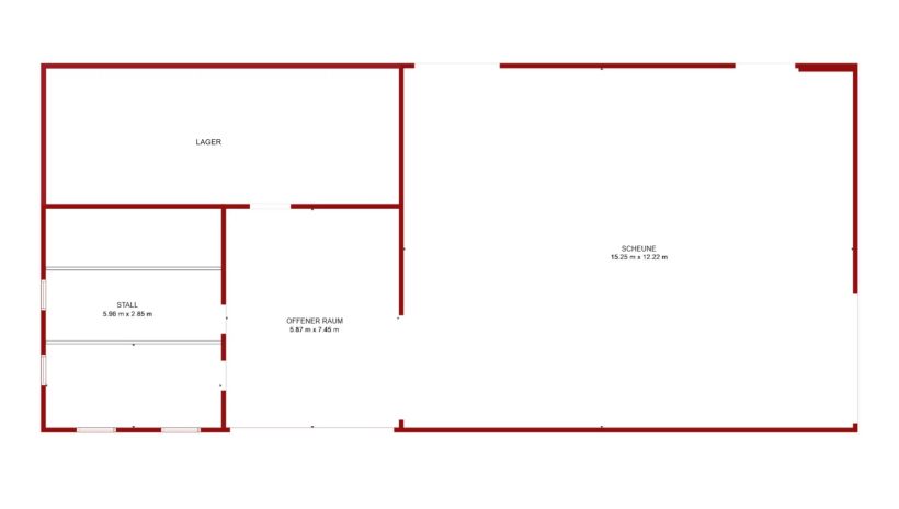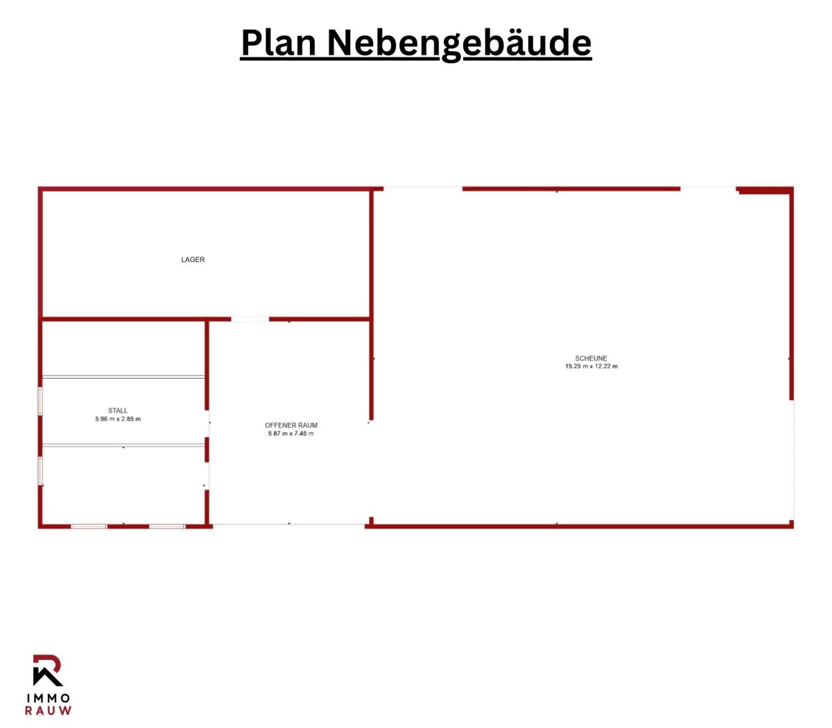 Neben dem Wohnhaus gehört eine Scheune mit 285 m² Nutzfläche zum Anwesen, die zahlreiche Möglichkeiten für Lagerung, Hobby, Handwerk oder sogar tierische Haltung bietet.