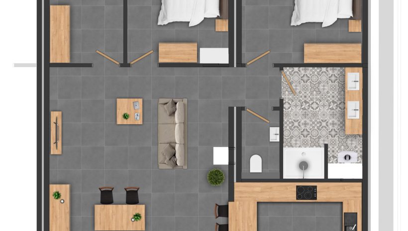 Jede Wohnung verfügt über eine Energieeffizienzklasse A++, was Effizienz und Umweltschutz gewährleistet. Die Ausstattung umfasst elektrische Jalousien, begehbare Duschen, sorgfältig ausgewählte Farben, eine voll ausgestattete Küche und ein komfortables Badezimmer.