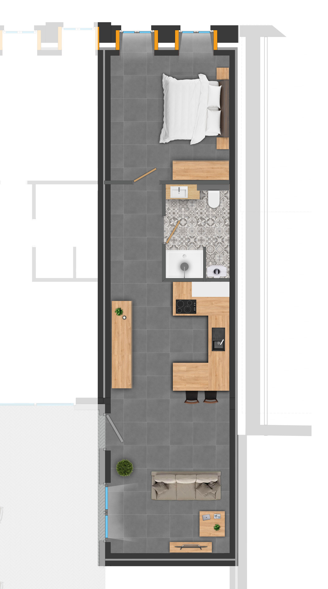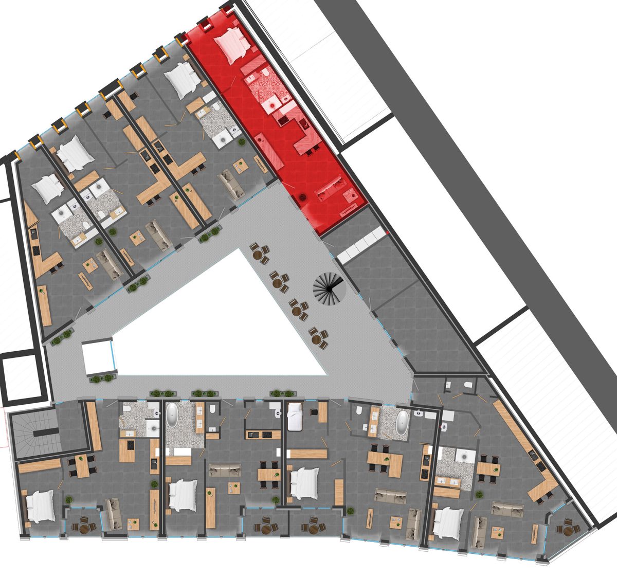 Jede Wohnung verfügt über eine Energieeffizienzklasse A++, was Effizienz und Umweltschutz gewährleistet. Die Ausstattung umfasst elektrische Jalousien, begehbare Duschen, sorgfältig ausgewählte Farben, eine voll ausgestattete Küche und ein komfortables Badezimmer.