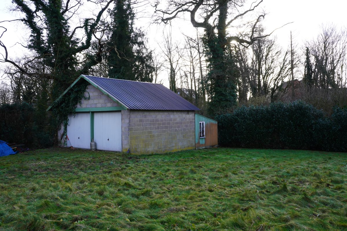 Die Einfahrt links vom Haus führt zur Doppelgarage, diesich am Ende des Grundstücks befindet.