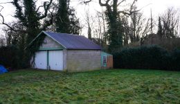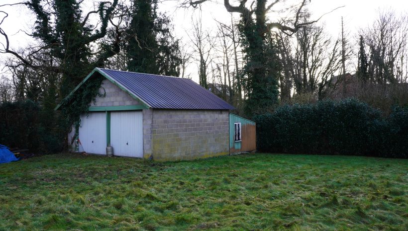 Die Terrasse auf der Rückseite der Immobilie ist nach Süden ausgerichtet und bietet Zugang zu einem praktischen Anbau, der als Werkstatt, Abstellraum oder ähnliches genutzt werden könnte. Hier befindet sich auch eine Toilette sowie die Pumpe, die mit der Regenwasserzisterne verbunden ist.
