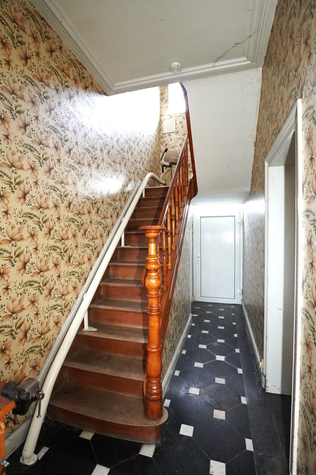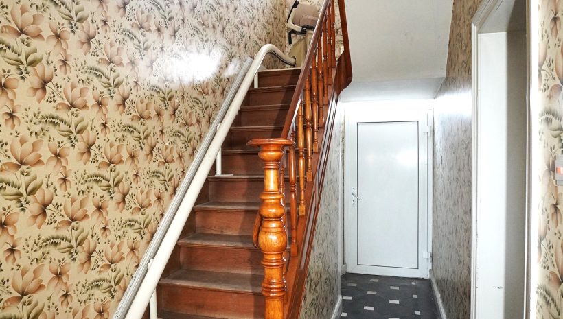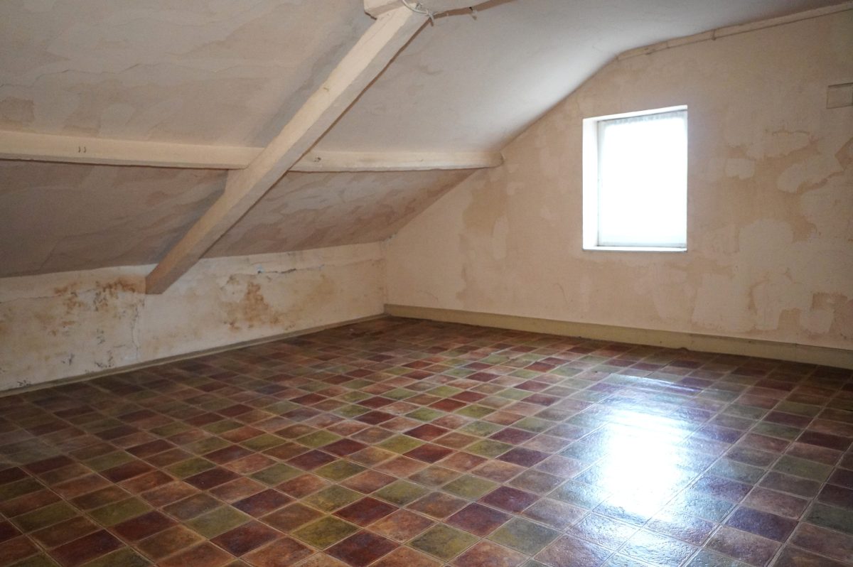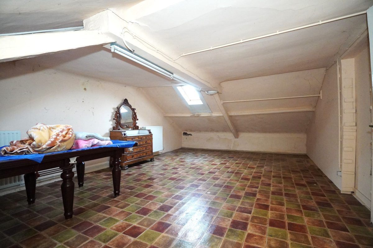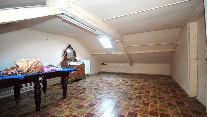 2. Etage: Flur, ein geräumiges Wohnzimmer, ein weiteres Schlafzimmer und ein ausbaubarer Dachboden.