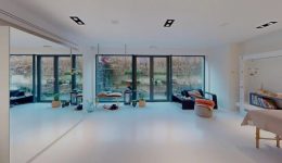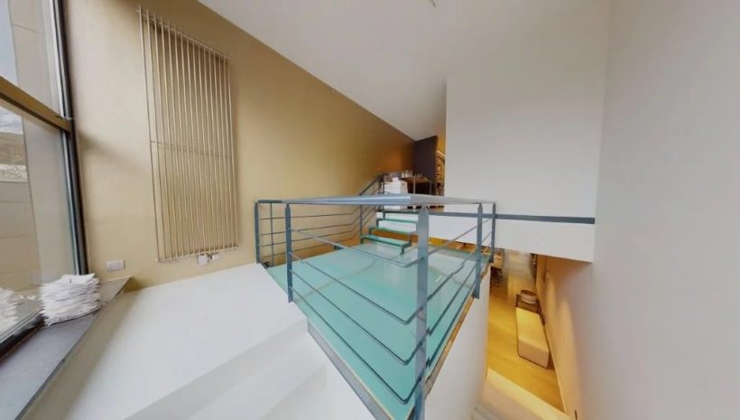Über eine elegante. moderne Glastreppe mit Podest gelangen Sie ins Obergeschoss. wo sich die exklusive Etagen-Duplex-Wohnung mit ca. 75 Wohn- und Nutzfläche entfaltet.