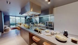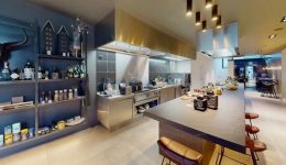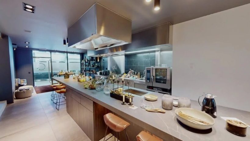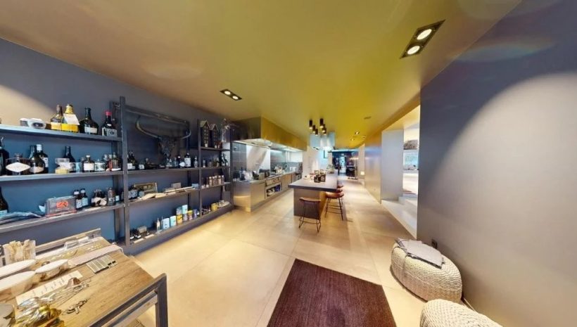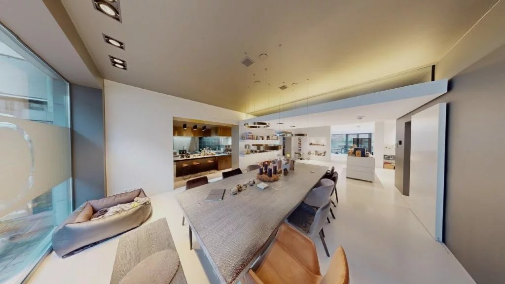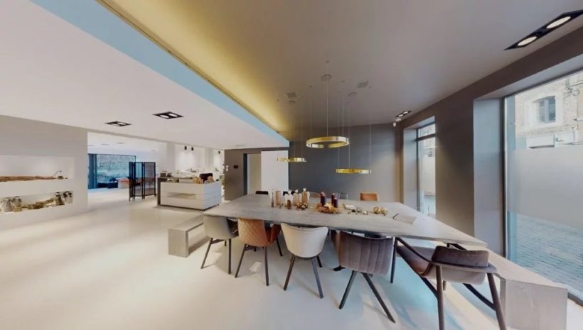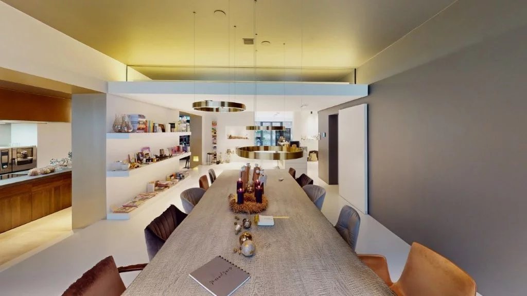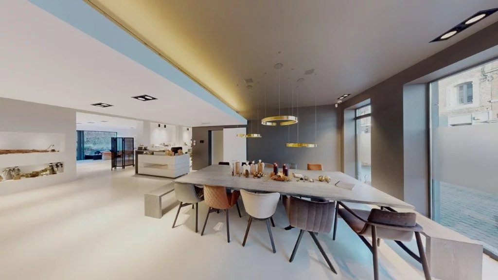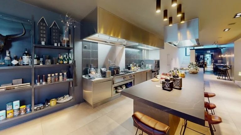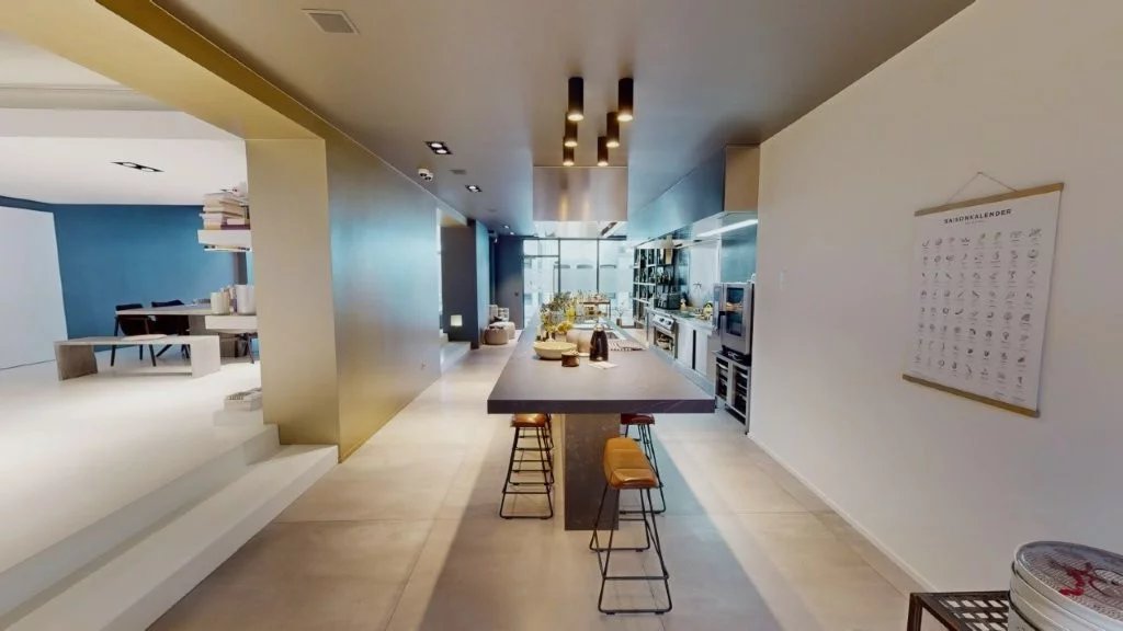 Die Architektur des Raumes ist ein Meisterwerk der Schlichtheit und Raffinesse. mit klaren Linien und edlen Materialien. die eine Atmosphäre von Luxus und Exklusivität schaffen. Große Fensterfronten durchfluten die Räumlichkeiten mit natürlichem Licht und verleihen dem Raum eine großzügige. einladende Wirkung. Die Ausstattung überzeugt durch höchste Qualität: edle Bodenbeläge. stilvolle abgehängte Decken mit durchdachter Beleuchtung und als besonderes Highlight eine exklusive. professionell ausgestattete Gastronomieküche. Mit modernen Geräten wie einem Kombigarer. einer Teppanyaki-Platte und Tellerwärmern erfüllt sie höchste Ansprüche und lässt das Herz jedes Unternehmers höherschlagen.