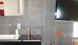 In allen Räumen harmonieren moderne. helle Fliesen.