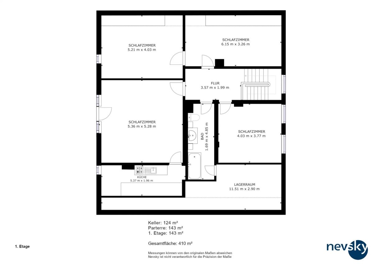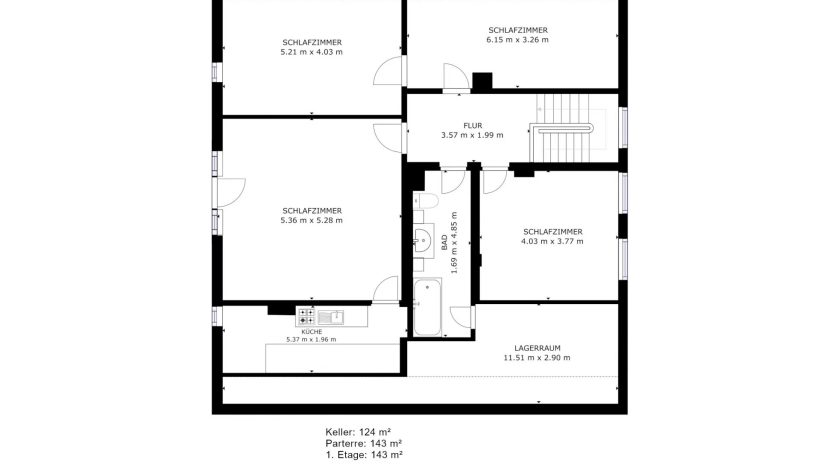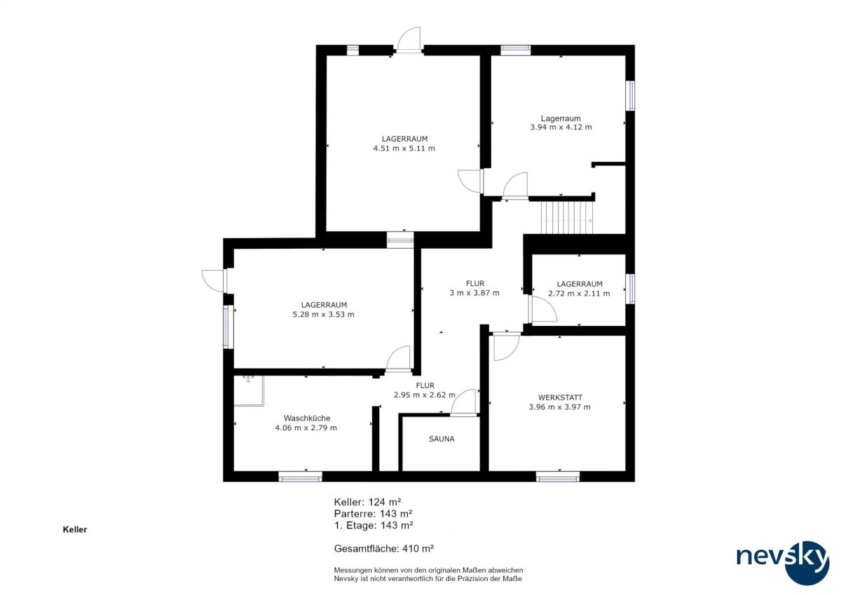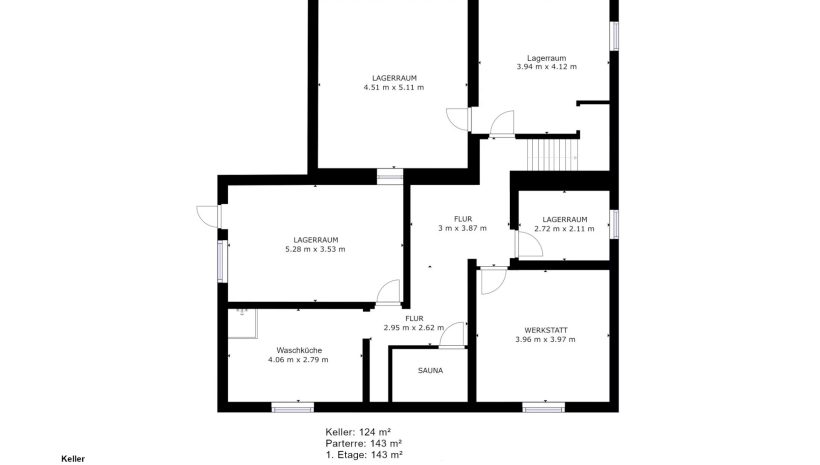 Die Immobilie besitzt ebenfalls ein Untergeschoss mit diversen Kellerräumen.