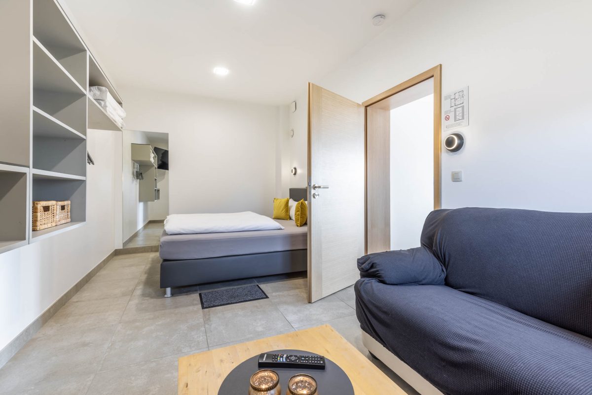 2) Eine große Ferienwohnung von 89 m² an der Frontseite des Gebäudes: