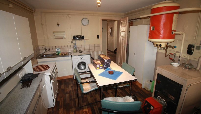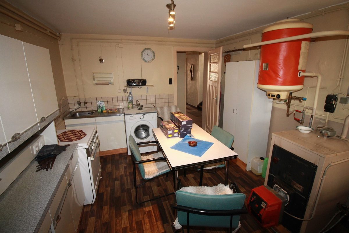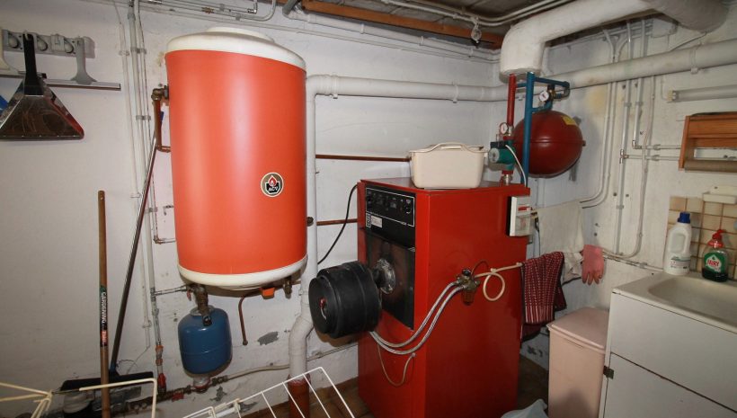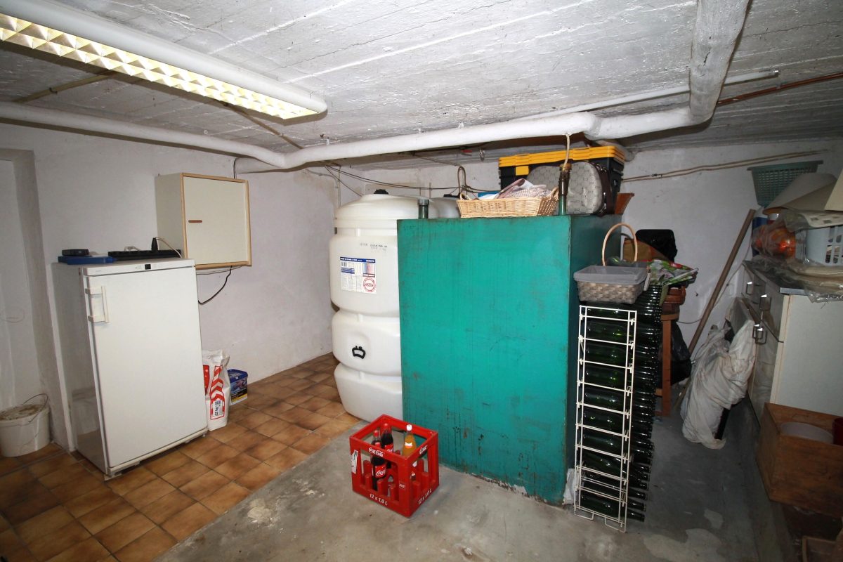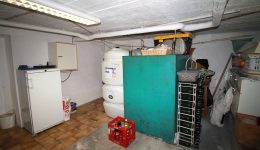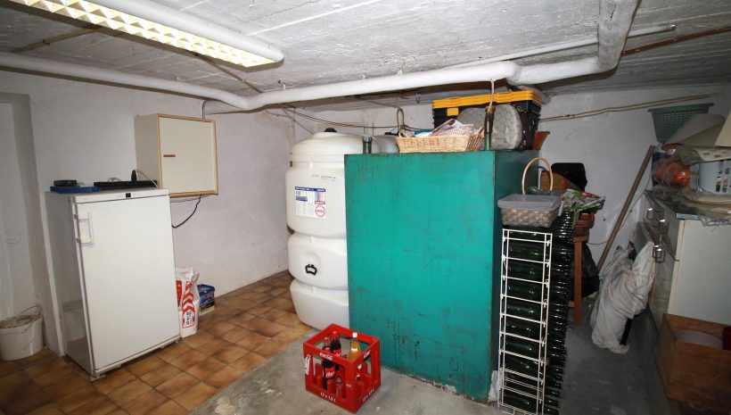 Erdgeschoss: Heizraum mit Ölzentralheizung, Abstellräume, Heizöltank, zwei Garagen und eine kleine Werkstatt.