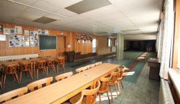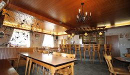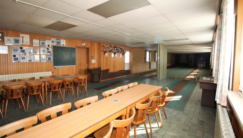 Der gastronomische Bereich strahlt gemütliches Ambiente aus und setzt sich wie folgt zusammen: Gaststätte – Wirtschaft (63 m²), ein Abstellraum (11 m²), ein kleiner Saal – Essraum (28 m²), getrennte Damen- und Herrentoiletten (28 m²) und 2 Bundeskegelbahnen (167 m²).