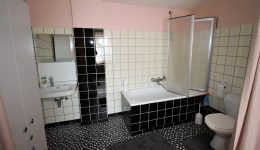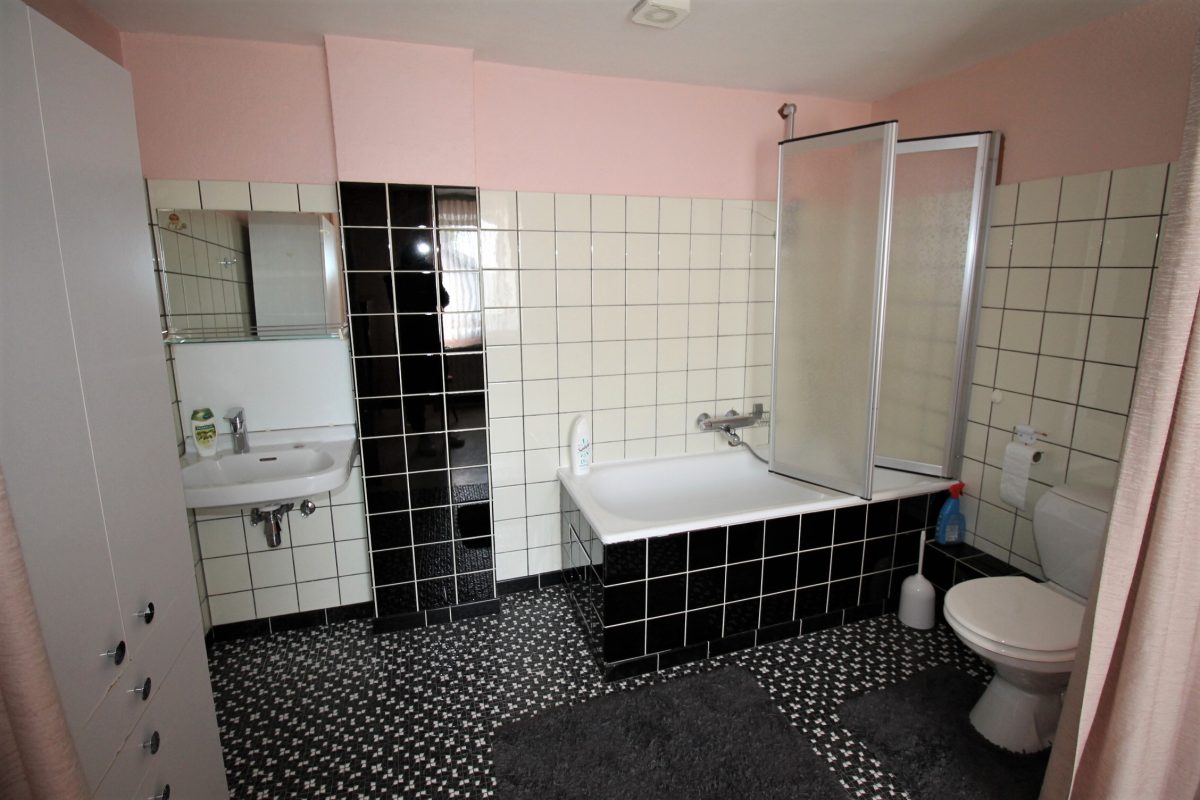Der Wohnbereich setzt sich wie folgt zusammen: eine Diele, eine Einbauküche mit Esszimmer, ein großes Wohnzimmer, ein Abstellraum, 5 Schlafzimmer, davon eins mit Balkon, 1 Badezimmer mit Badewanne, Waschbecken und WC, Speicher/Abstellplatz, welcher weitere Wohnfläche ermöglicht und ein Keller mit Kühlraum, Ölzentralheizung, Abstellraum und eine Garage.