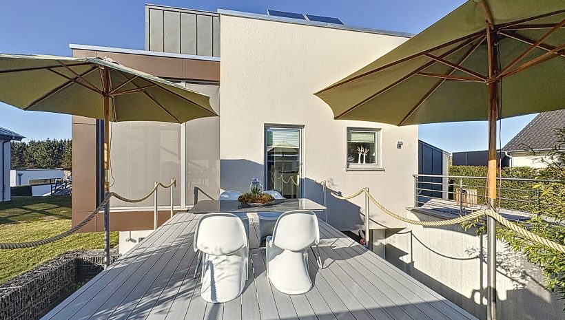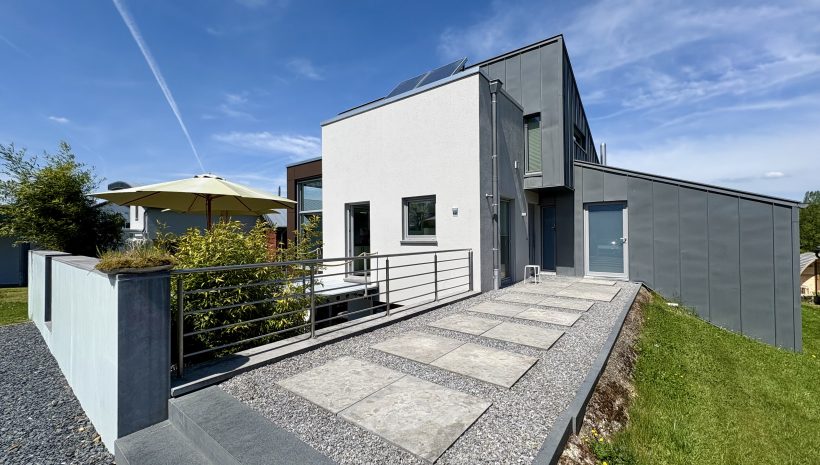 Immo Weiss & Faber bietet Ihnen dieses moderne Einfamilienhaus auf einem Grundstück von 1.056 m² zum Verkauf an, gelegen in Sankt Vith (Rodter Straße).