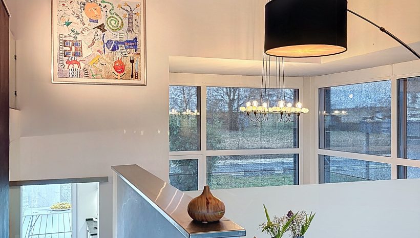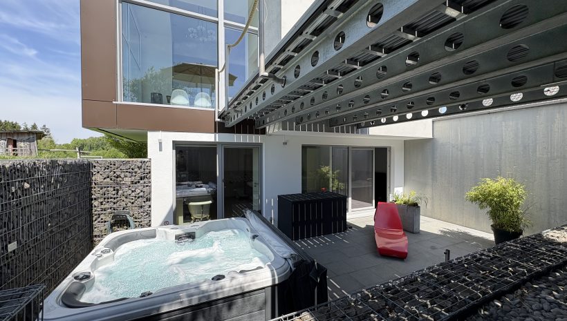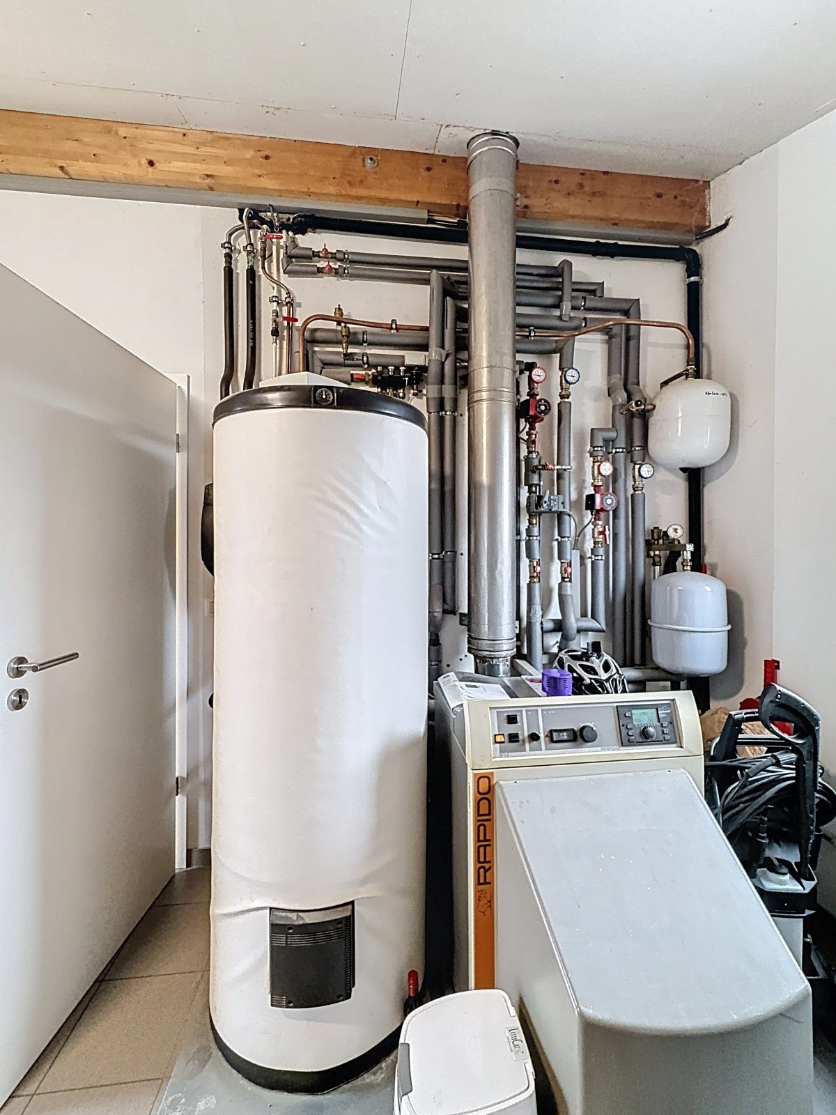 Traditionelle Bauweise (Mauerwerk) – Ölheizung (1.500 l), teilweise Fußbodenheizung – Solar- und Photovoltaikanlagen – Betondecken – Fenster aus PVC/Alu mit Dreifachverglasung – Das Haus verfügt über einen Wassertank (5.000 l) – Teilweise Trespa- und Zinkfassade.