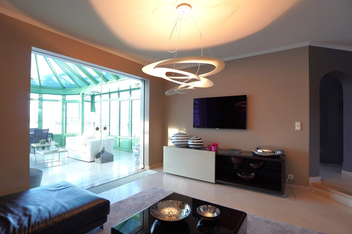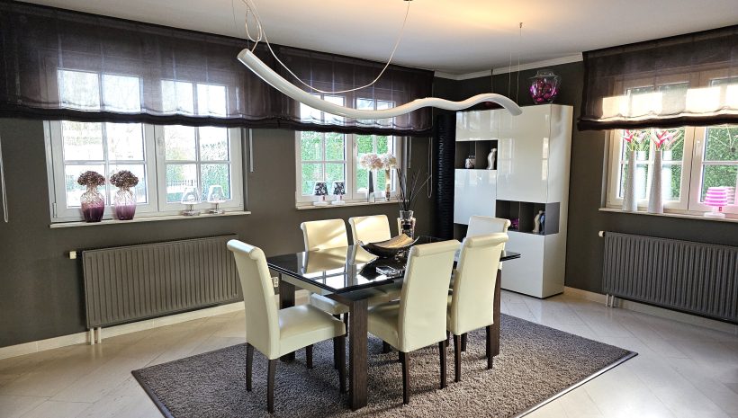 Diese beeindruckende Villa, die auf einem großen Grundstück von 1447m² im Jahre 1992 errichtet wurde, befindet sich in einer äußerst ruhigen und naturnahen Lage und bietet sowohl für Familien als auch für Freiberufler eine ideale Raumaufteilung.