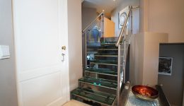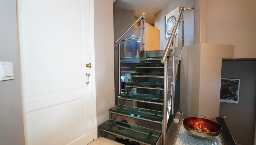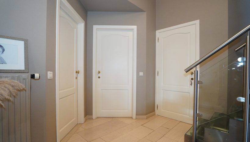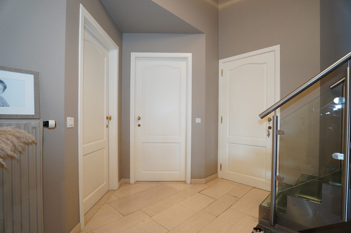 Zwei Schlafzimmer, das Ankleidezimmer und der Flur der ersten Etage verfügen über elegante Parkettböden, während alle anderen Böden mit hochwertigen Fliesen versehen sind.
