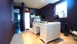 Die Immobilie verfügt über eine Halbebene, die mit der zentralen Treppe verbunden ist, diese führt zu einem kleinen Abstellraum und einem separaten WC. Für den professionellen Bedarf bietet diese Ebene zudem ein Büro mit Zugang zum Warteraum und Besprechungsraum, was die Immobilie auch für Freiberufler oder Selbstständige attraktiv macht. Hier kann man Arbeit und Wohnen perfekt miteinander verbinden.