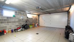 Der Eingangsbereich führt auch in das Untergeschoss, das einen Heizungsraum mit Ölheizung sowie Zugang zu zwei großzügigen Garagen mit elektrischen Garagentoren bietet.