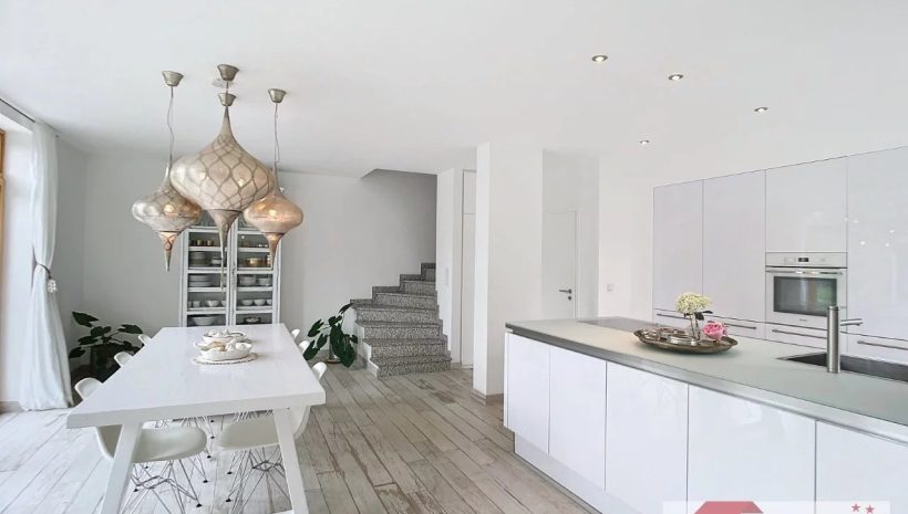Der Essbereich mit moderner, offener Küche samt hochwertiger Einbauküche und Kochinsel ist ein Paradies für Gastgeber:innen.