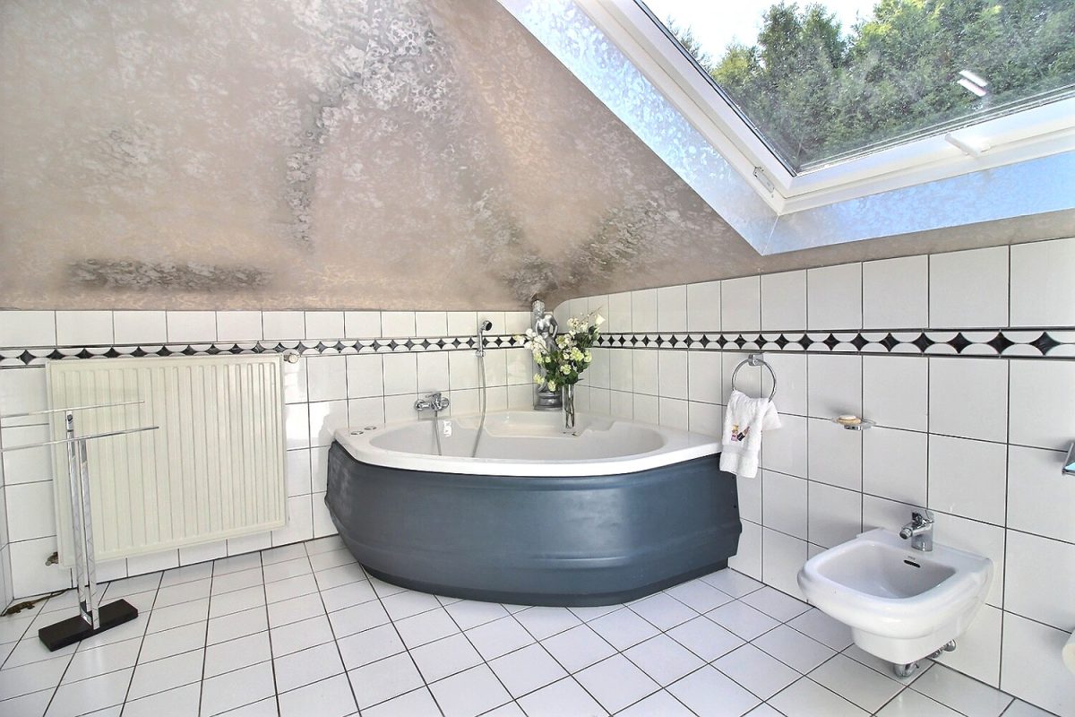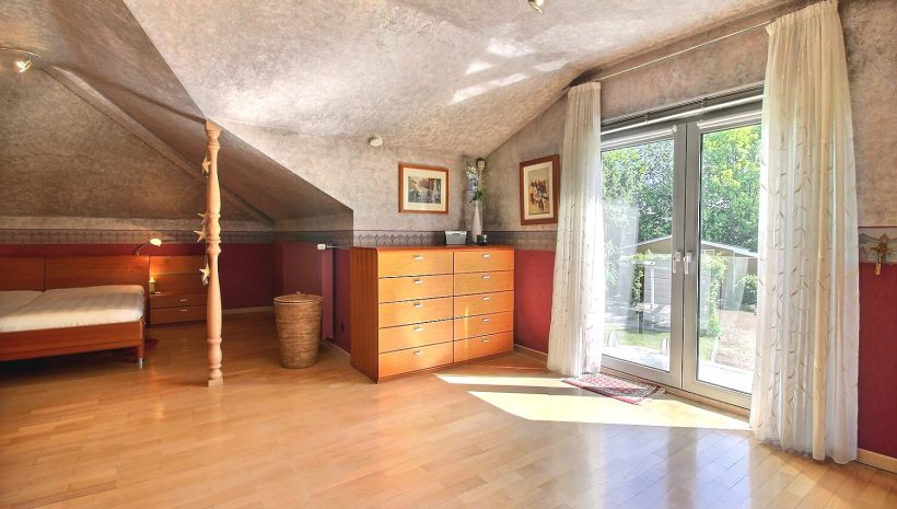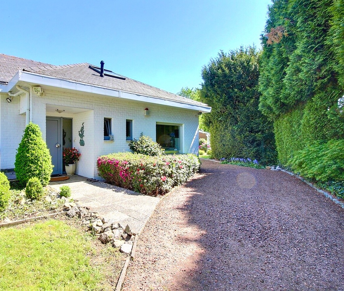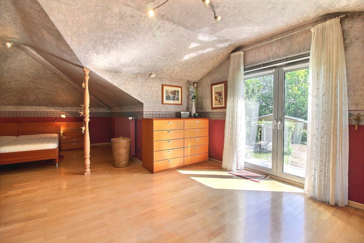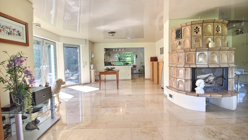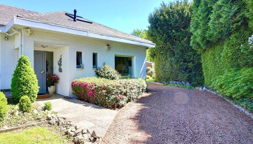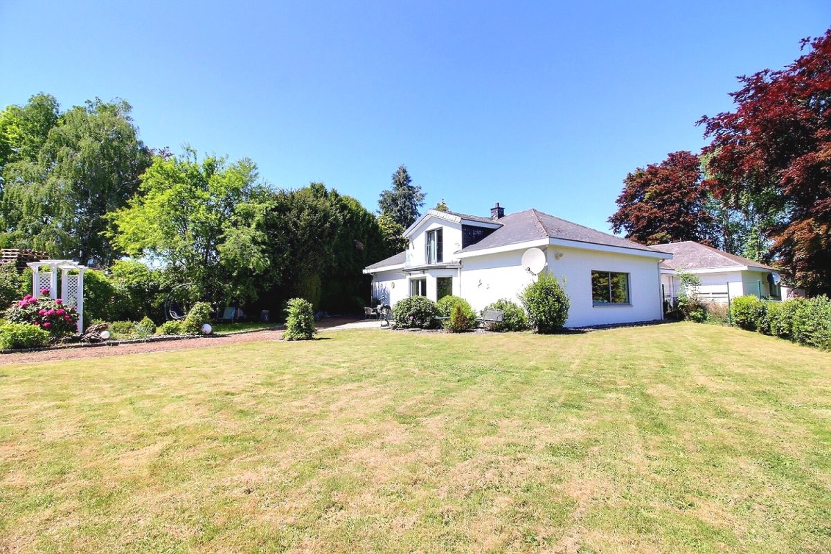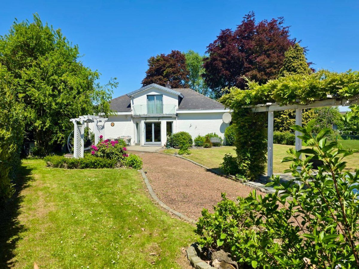 BAELEN rue Meuschemen, 5A : Es ist uns eine Ehre, Ihnen eine außergewöhnliche Immobilie mit gehobener Ausstattung in ruhiger Lage von Baelen zu präsentieren. Dieses lichtdurchflutete Anwesen besticht durch seine großzügige Wohnraumaufteilung und die herrliche Aussicht auf eine hübsch angelegte Parkanlage mit Natursteinterrasse und Pergola – ein wahre Oase der Ruhe und Entspannung. Die komplette Ausstattung lässt keine Wünsche offen: hochwertige Sanitär Ausstattungen, eine hochwertige Einbauküche der Marque LEICHT mit Wasserfiltersystem und Granitplatte, ein beeindruckender gekachelter Kamin, ein Hauswirtschaftsraum mit Zweitküche,… Im Erdgeschoss erwartet Sie ein eleganter Marmorboden, ergänzt durch eine moderne Spanndecke für ein zeitloses Ambiente. Das Schlafzimmer, auf der Etage, mit angrenzendem Ankleideraum und komplettem Bad verfügt über Parkettboden und verspiegelten Einbauschränken; wobei Sie auch von dem verglasten Balkon aus alles im Blick haben. Die automatisierte Außenbeleuchtung, ein motorisiertes Einfahrtstor, sowie eine Alarmanlage sorgen für Komfort und Sicherheit. Das Haus verfügt über PVC-Fenster mit Doppelverglasung und elektrische Rollläden mit Zeitschaltuhr und Fernbedienung. Es besteht die Möglichkeit mittels Umbauarbeiten, ein zusätzliches zweites Schlafzimmer im Haus zu integrieren. Im hinteren Bereich der Parkanlage befindet sich ein komplettes Gästehaus, geeignet für junge Erwachsene, mit angrenzendem Lagerhaus sowie großzügiger Rangier- und Parkfläche. Eine Garage (± 23 m²) mit motorisiertem Tor rundet dieses attraktive Objekt ab. Eine Immobilie, die sowohl durch seine Ausstattung als auch durch seine Lage überzeugt – ideal für Familien oder Personen mit hohen Ansprüchen.