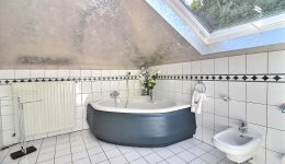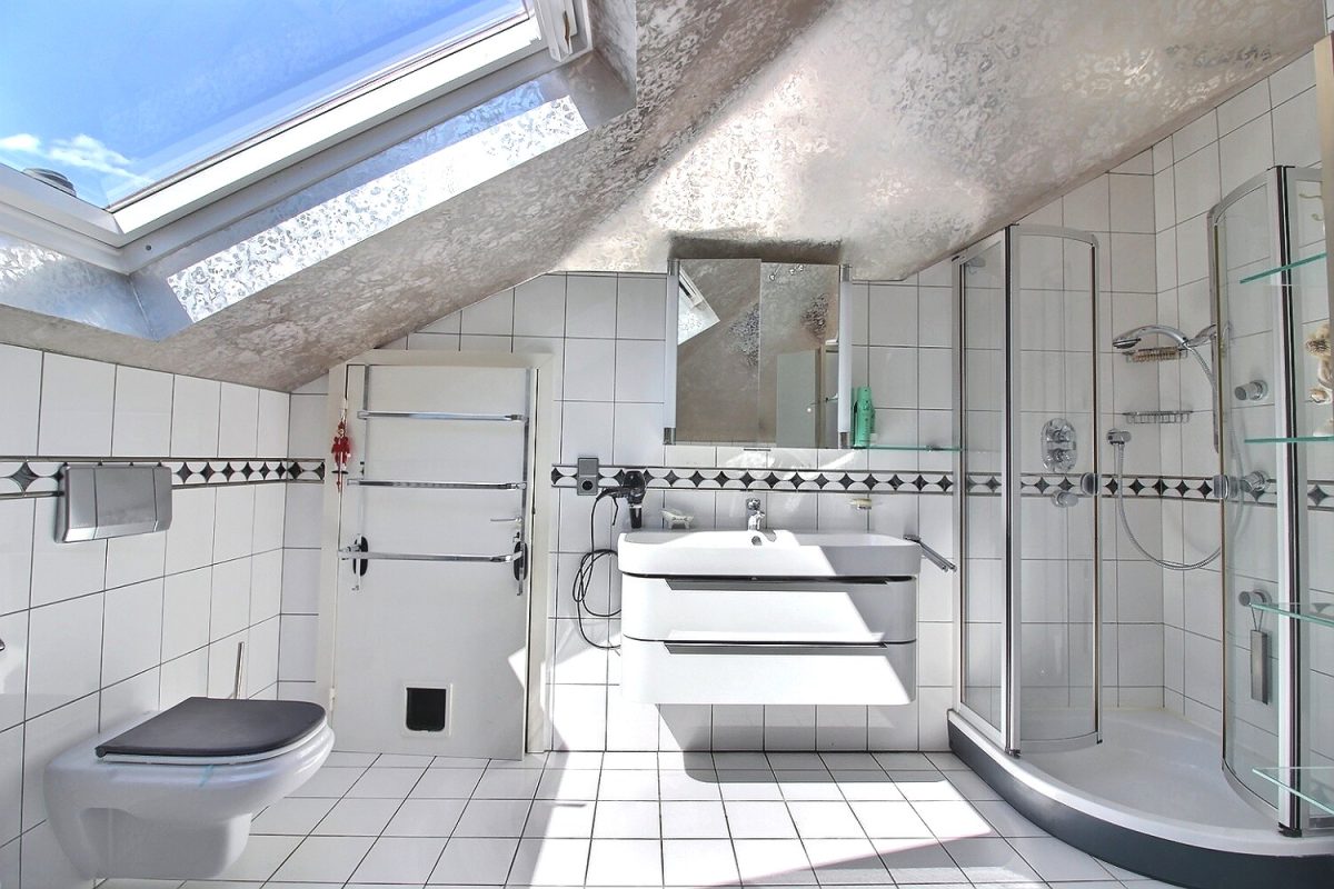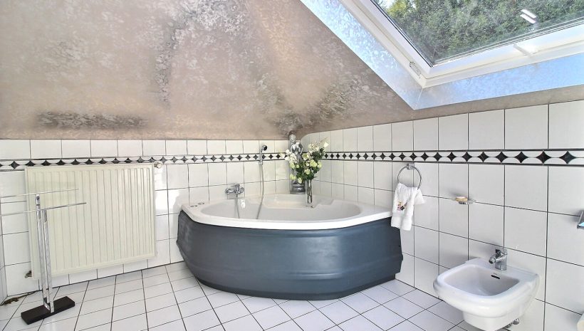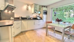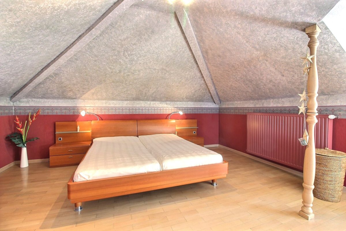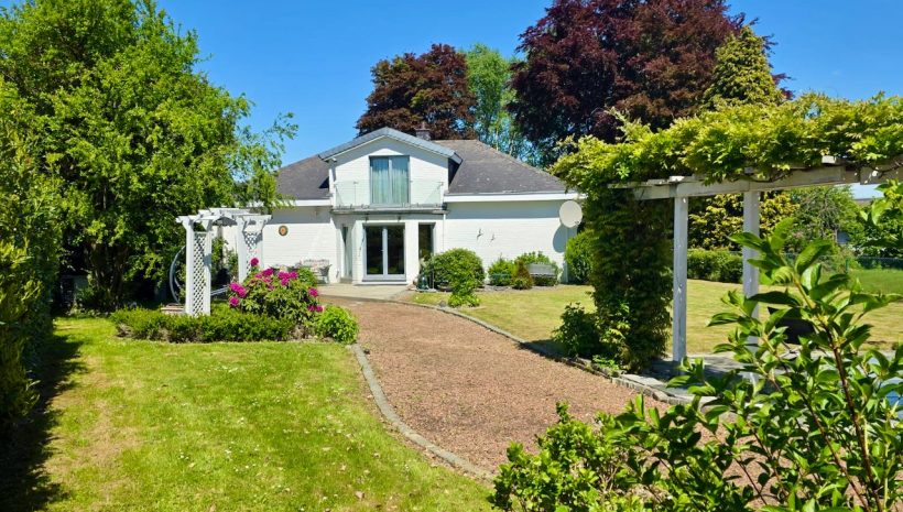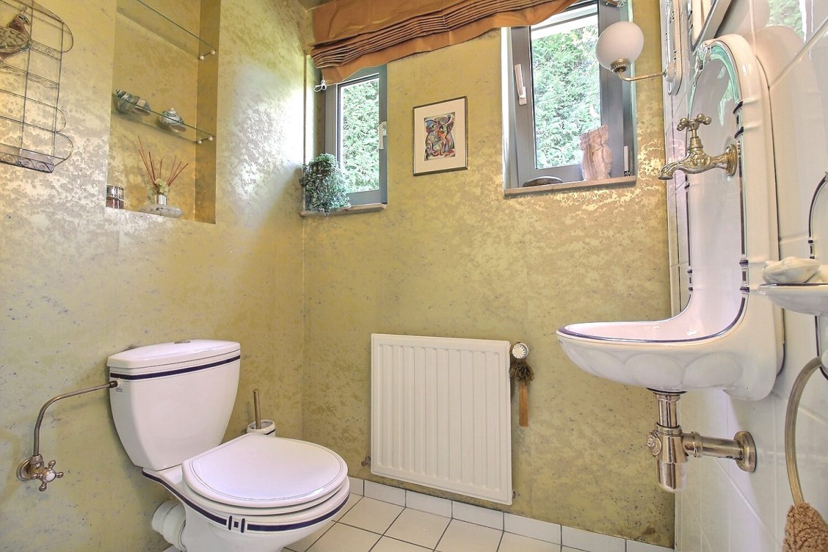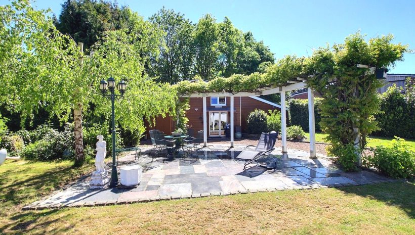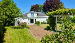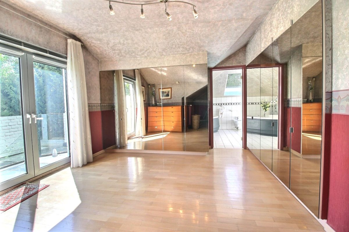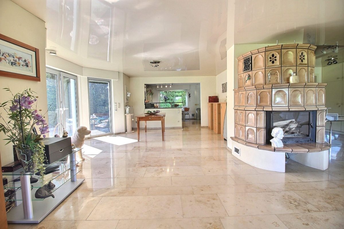 BAELEN rue Meuschemen, 5A : Es ist uns eine Ehre, Ihnen eine außergewöhnliche Immobilie mit gehobener Ausstattung in ruhiger Lage von Baelen zu präsentieren. Dieses lichtdurchflutete Anwesen besticht durch seine großzügige Wohnraumaufteilung und die herrliche Aussicht auf eine hübsch angelegte Parkanlage mit Natursteinterrasse und Pergola – ein wahre Oase der Ruhe und Entspannung. Die komplette Ausstattung lässt keine Wünsche offen: hochwertige Sanitär Ausstattungen, eine hochwertige Einbauküche der Marque LEICHT mit Wasserfiltersystem und Granitplatte, ein beeindruckender gekachelter Kamin, ein Hauswirtschaftsraum mit Zweitküche,… Im Erdgeschoss erwartet Sie ein eleganter Marmorboden, ergänzt durch eine moderne Spanndecke für ein zeitloses Ambiente. Das Schlafzimmer, auf der Etage, mit angrenzendem Ankleideraum und komplettem Bad verfügt über Parkettboden und verspiegelten Einbauschränken; wobei Sie auch von dem verglasten Balkon aus alles im Blick haben. Die automatisierte Außenbeleuchtung, ein motorisiertes Einfahrtstor, sowie eine Alarmanlage sorgen für Komfort und Sicherheit. Das Haus verfügt über PVC-Fenster mit Doppelverglasung und elektrische Rollläden mit Zeitschaltuhr und Fernbedienung. Es besteht die Möglichkeit mittels Umbauarbeiten, ein zusätzliches zweites Schlafzimmer im Haus zu integrieren. Im hinteren Bereich der Parkanlage befindet sich ein komplettes Gästehaus, geeignet für junge Erwachsene, mit angrenzendem Lagerhaus sowie großzügiger Rangier- und Parkfläche. Eine Garage (± 23 m²) mit motorisiertem Tor rundet dieses attraktive Objekt ab. Eine Immobilie, die sowohl durch seine Ausstattung als auch durch seine Lage überzeugt – ideal für Familien oder Personen mit hohen Ansprüchen.
