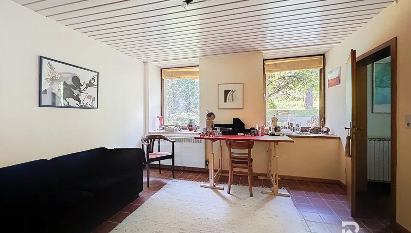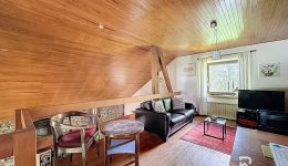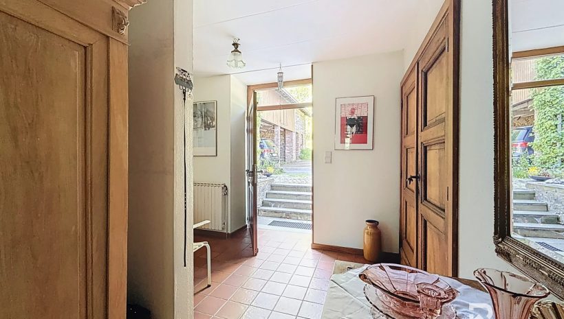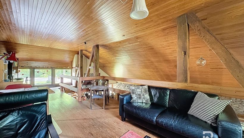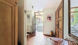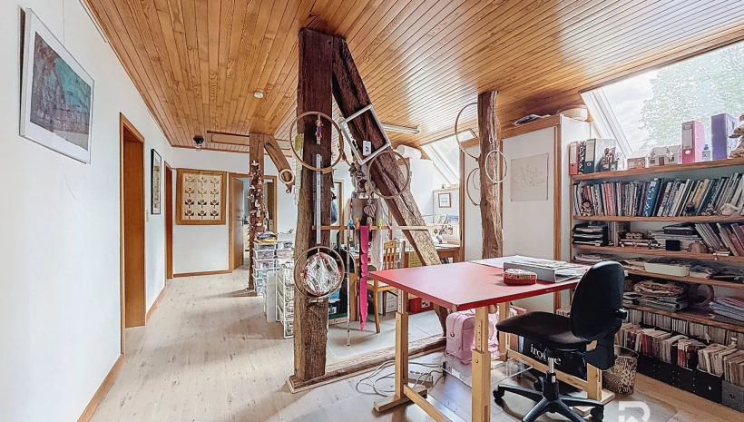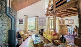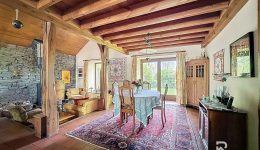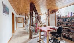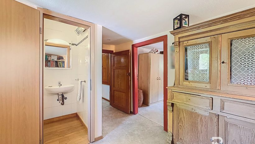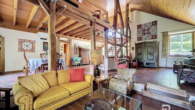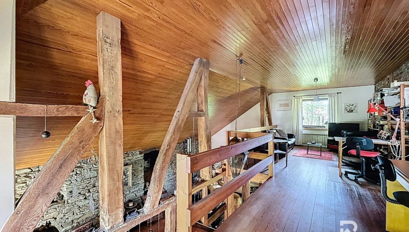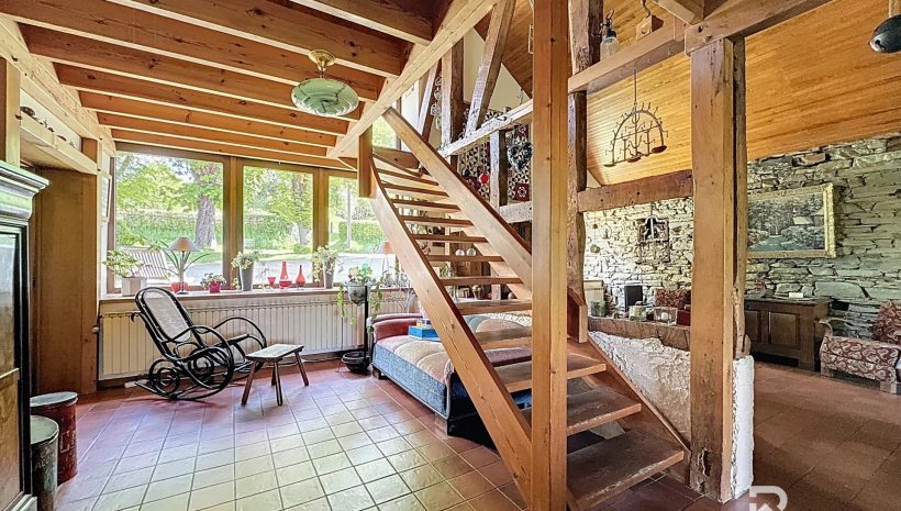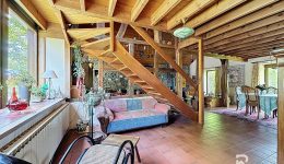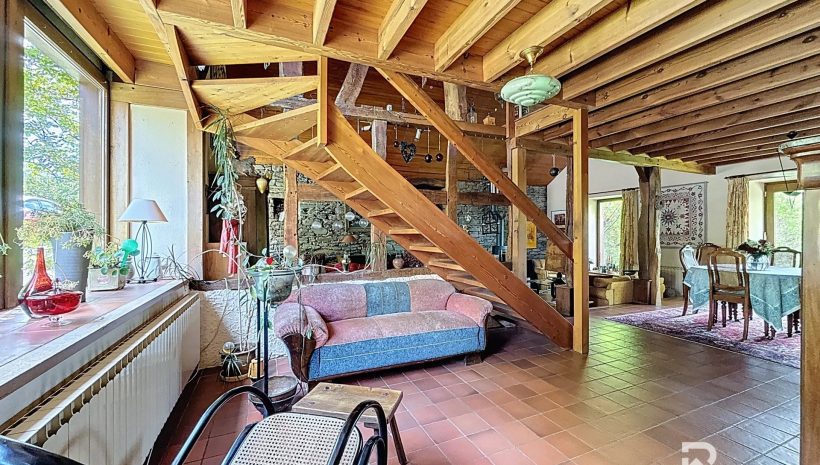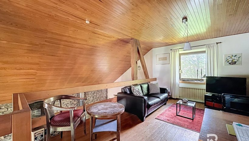 Das linke Gebäude, das ursprüngliche Wohnhaus, strahlt rustikale Gemütlichkeit aus – mit alten Holzböden, Natursteinmauern und kleinen Fenstern, die den traditionellen Charakter bewahren. Im rechten Trakt, einstige Stallungen, erwartet Sie ein architektonisch neu interpretierter Wohntraum: ein heller, offener Maisonette-Stil mit großzügiger Galerie, sichtbaren Holzbalken und großen Fensterflächen, die Licht und Luft ins Innere bringen.