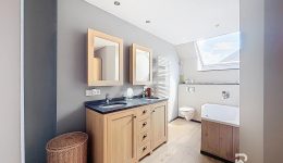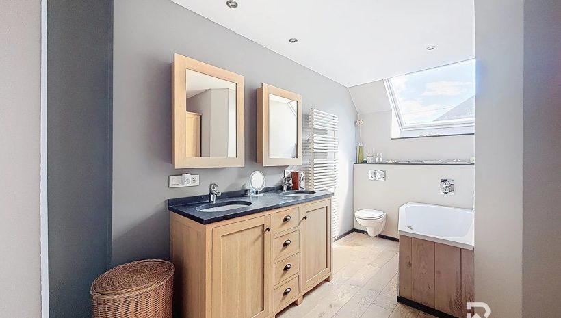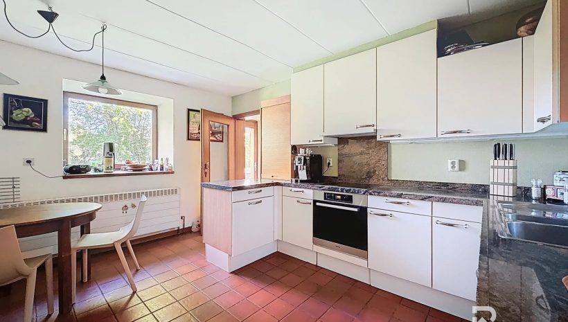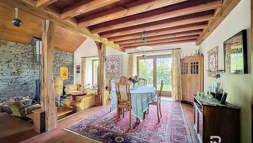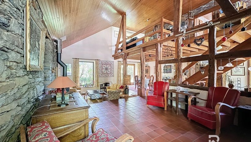 Die gesamte Immobilie überzeugt mit hochwertigen Materialien wie Schieferdach, Naturstein und einer Vielzahl stilvoller Details. Mit insgesamt fünf Schlafzimmern, zwei Bädern und 18 Räumen bietet dieses Anwesen reichlich Platz für Familie, Gäste oder kreative Projekte.