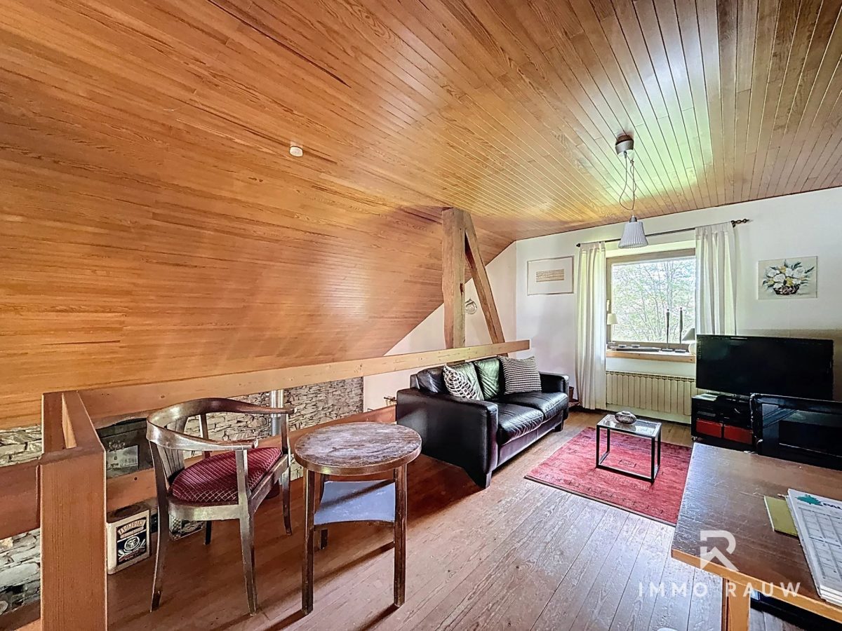 Einladend wirkt der geschützte Innenhof mit Baumbestand zur Straßenseite, ebenso wie die ruhige Terrasse mit Blick zur Amel, abgeschirmt durch eine grüne Naturkulisse. Ein zusätzliches Highlight: Die großzügige Grundstücksfläche von 6.739 m² beinhaltet eine bebaubare Parzelle – perfekt für zukünftige Ideen.