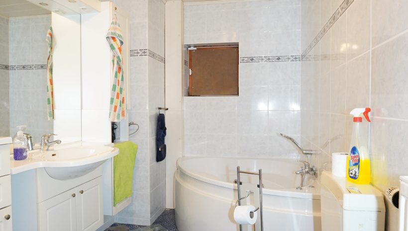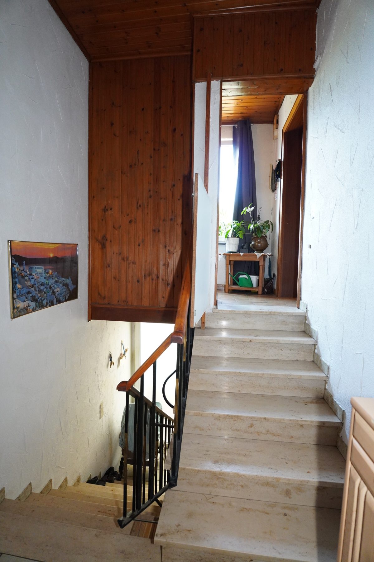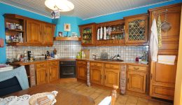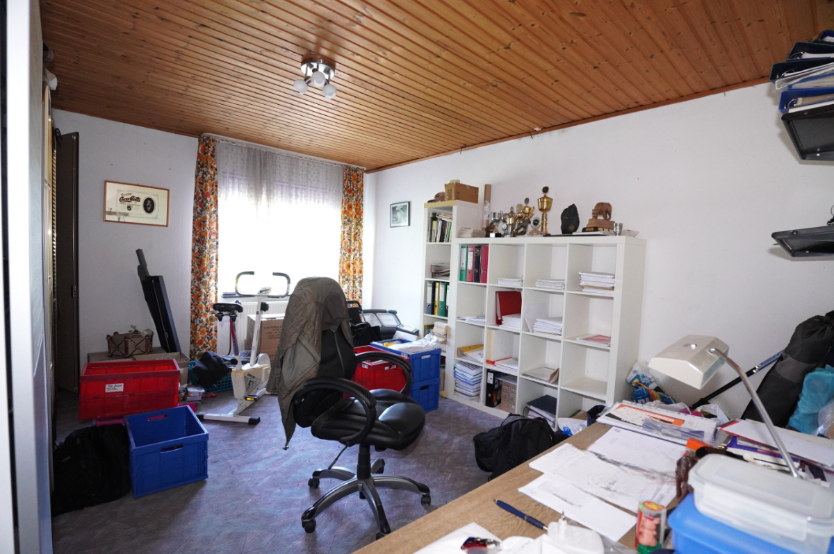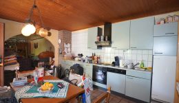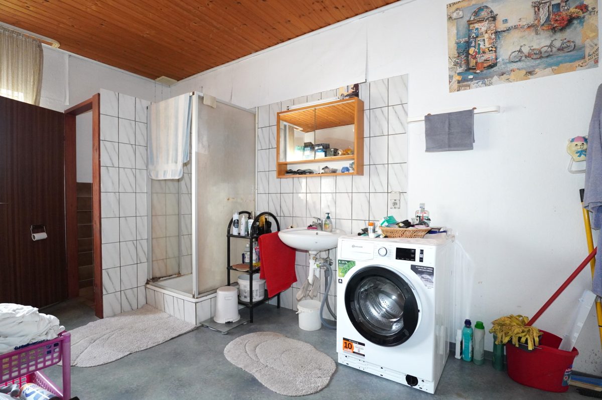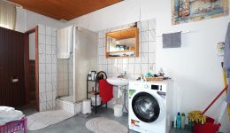 Ausstattung: Die Heizung ist eine Ölzentralheizung, der Heizkessel sowie der große Tank befinden sich im gleichen Keller, der von außen zugänglich ist, die Stromzähler sind getrennt, es geben Wasserzähler, einige Fenster sind aus Holz, andere aus PVC, 3 Garagen sind über die rechte Einfahrt zugänglich und befinden sich im hinteren Teil des Grundstücks.