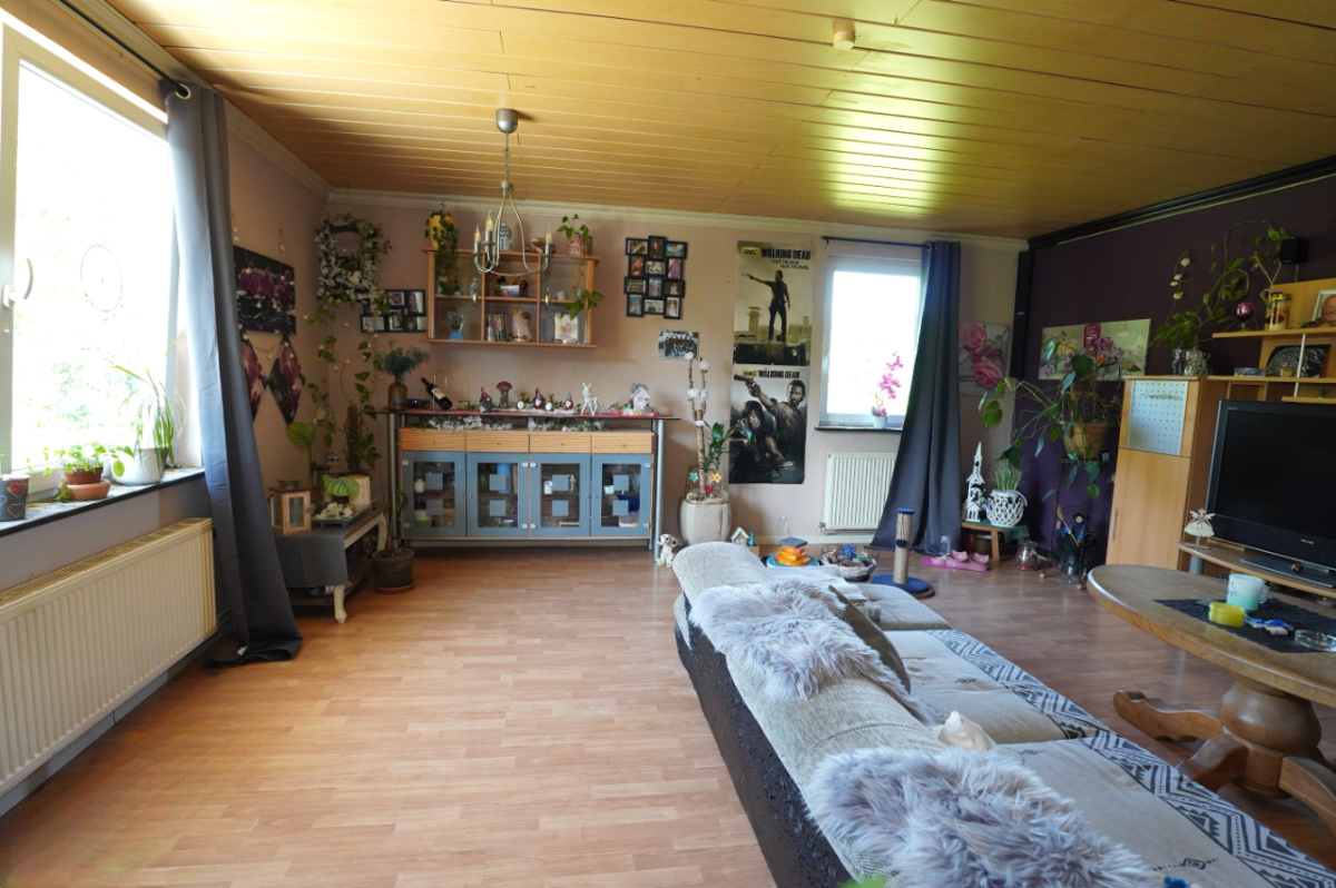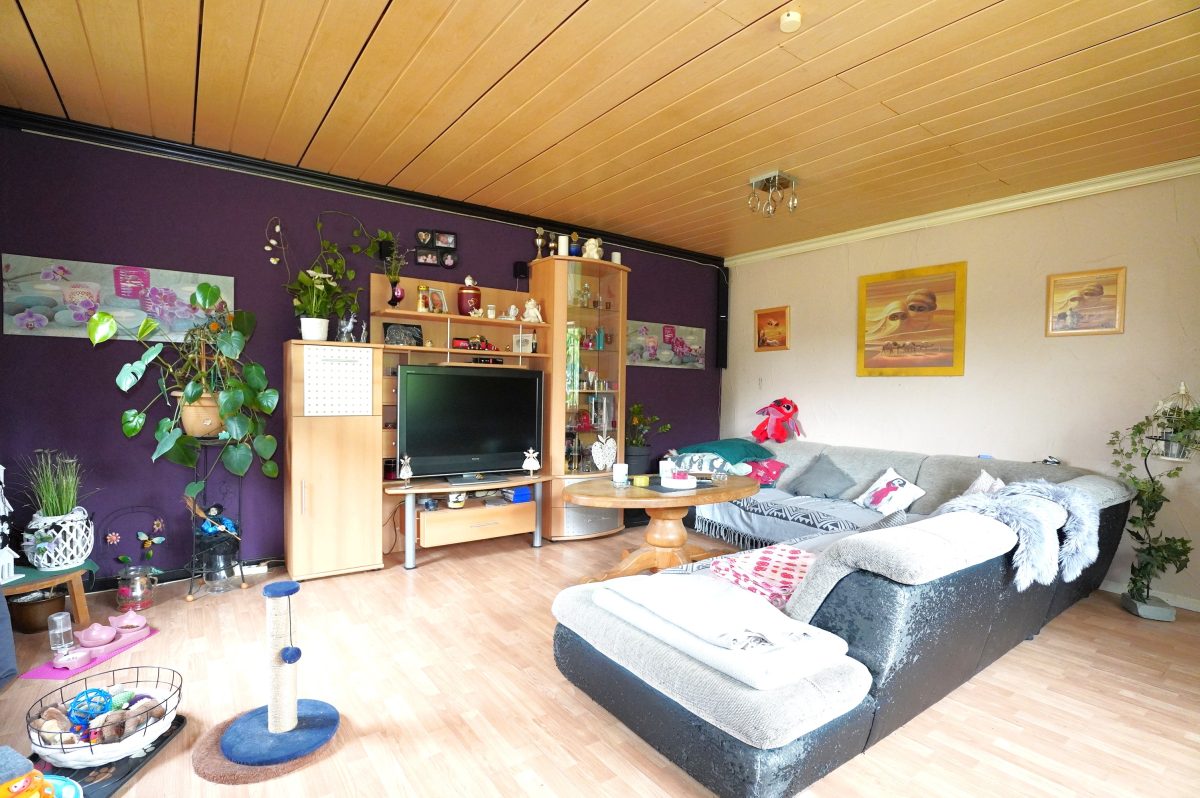 Kleiner Eingangsbereich, großes Wohnzimmer mit Küchenecke, 1 Schlafzimmer und ein Duschbad mit Waschbecken, WC und Dusche.