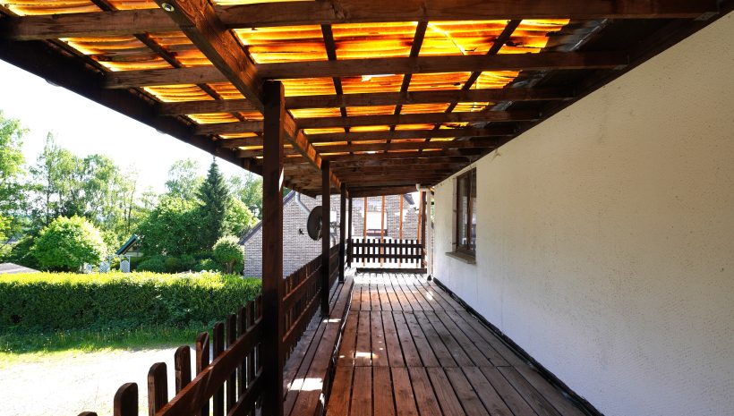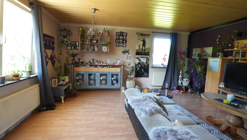 Die Fenster sind aus Holz mit älterer Doppelverglasung.
