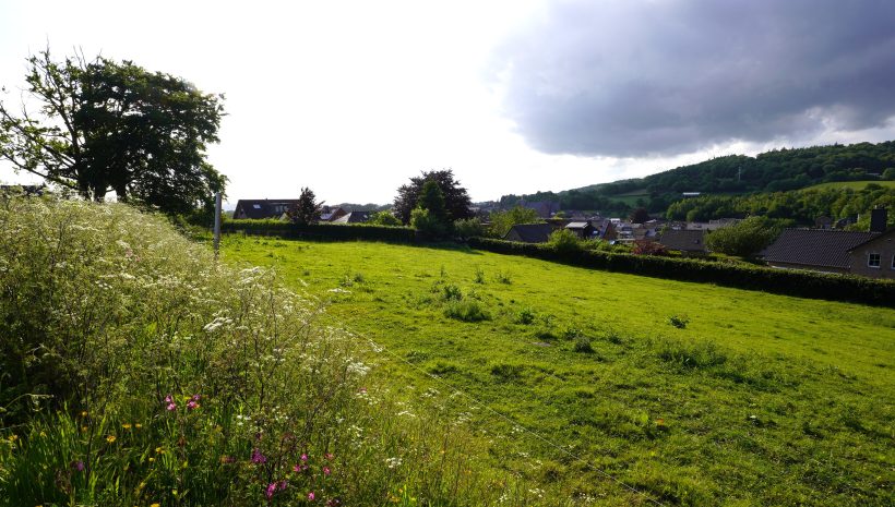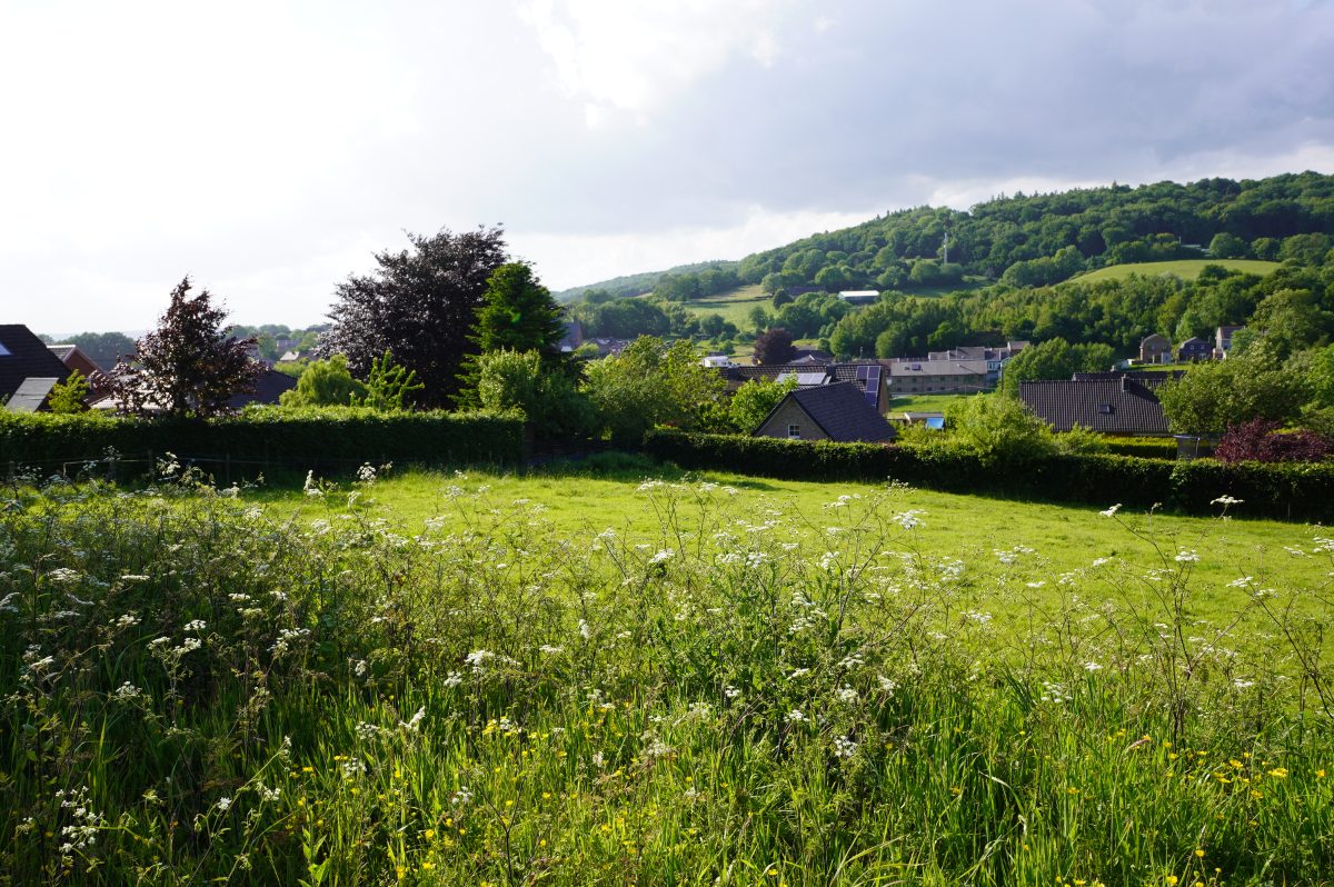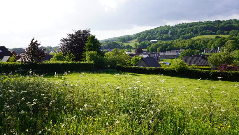 Wunderschönes Grundstück von ca. 810 m², gelegen in einer idyllischen Gegend von Gemmenich, Rue Pinaye Los 2, naturnah mit Blick auf das Tal, das Dorf, die Wiesen und den Wald, der die drei Grenzen von Belgien, Deutschland und die Niederlande verbindet.