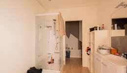 Ein großer Eingangsbereich, 2 Badezimmer, eine separate Toilette, eine Küche, ein großes Schlafzimmerzimmer und ein sehr großer offener Wohnbereich mit viel Lichteinfall.