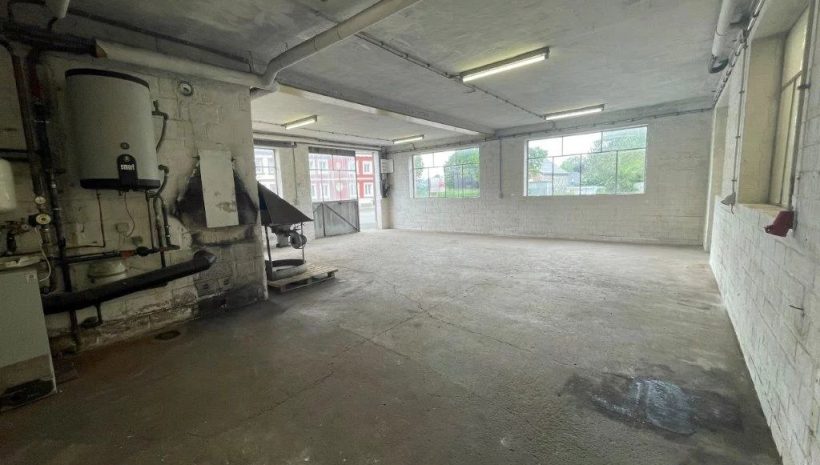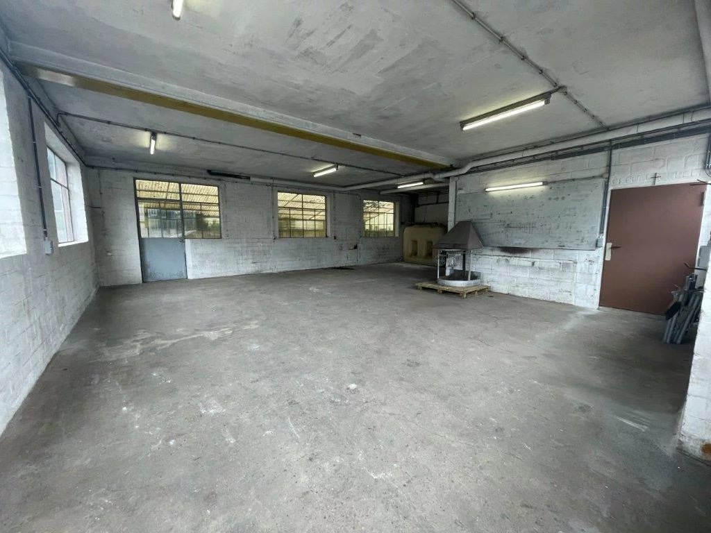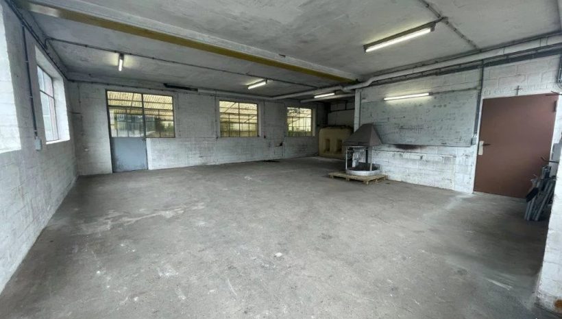 Im Angebot befindet sich eine Halle von 100m², welche ebenerdig zugänglich ist und eine gute Ausleuchtung dank der zahlreichen Fenster bietet.