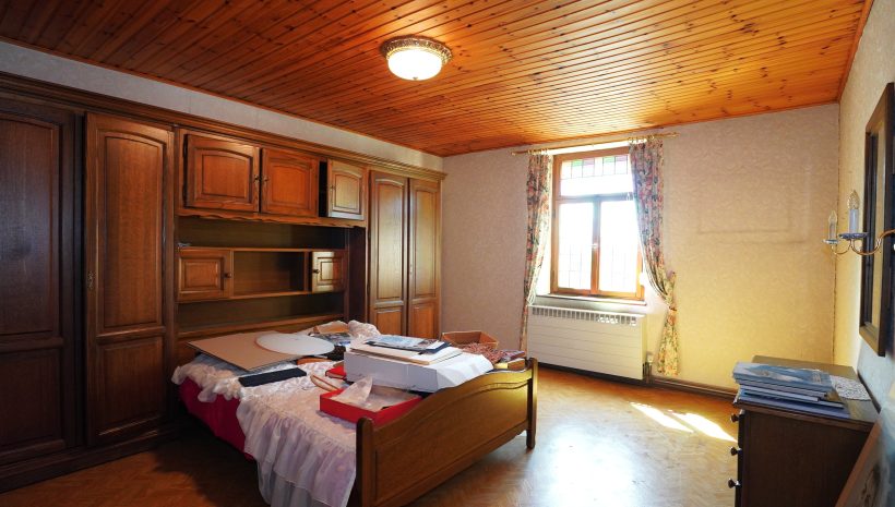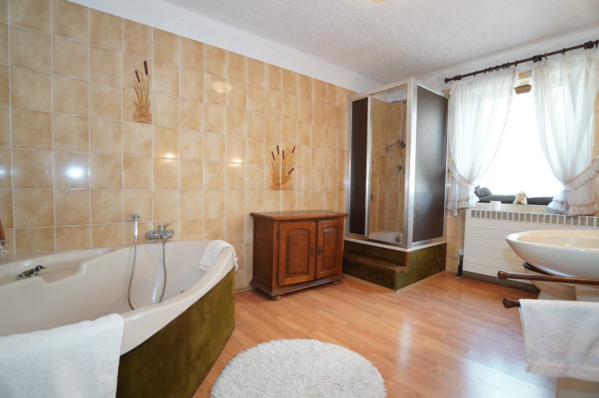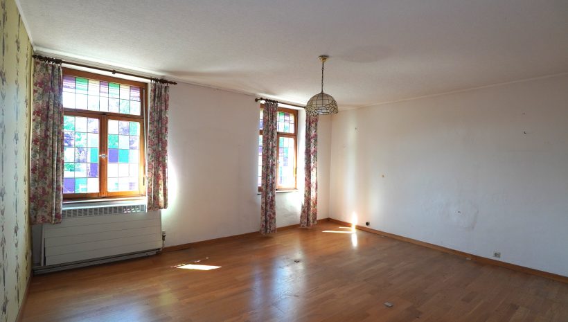 Die Immobilie ist großzügig geschnitten und kann bis zu 7 Schlafzimmer umfassen – ideal für eine große Familie. Die Heizung erfolgt über eine zentrale Ölheizung. Im Erdgeschoss sind Holzfenster mit Doppelverglasung vorhanden, im Obergeschoss befinden sich schöne originale bunte Glasfenster mit Einfachverglasung und Rollläden. Die Fassaden der 1. und 2. Etage sind mit Naturschiefer verkleidet.