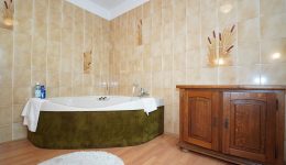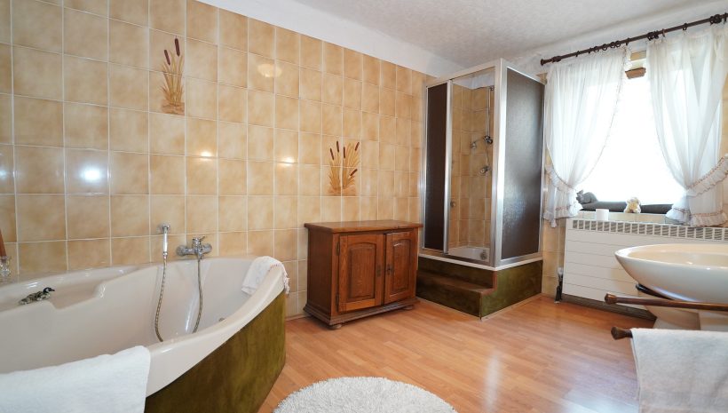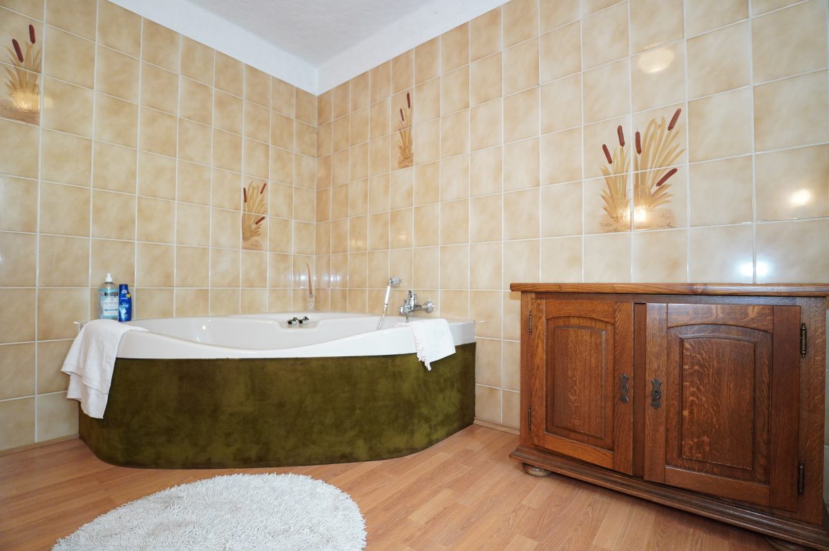 Das Obergeschoss besteht aus einer Nachtdiele, drei großen und schönen Schlafzimmern sowie einem Badezimmer mit Eckbadewanne, Dusche, WC und Waschbecken.