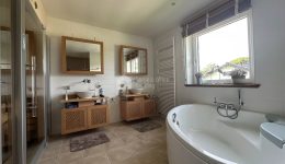 Die außergewöhnliche Immobilie wurde 1994 mit viel Geschmack vollständig renoviert und bietet 273 m² Wohnfläche, die durch hochwertige Materialien veredelt wurden. Das Dach wurde 2003 erneuert, die dreifach verglasten Fenster stammen aus dem Jahr 2012 – jedes Detail zeugt von sorgfältiger und gewissenhafter Instandhaltung. Der Wohnbereich besticht durch Wärme und Charakter, insbesondere dank des imposanten Steinkamins. Fünf einladende Schlafzimmer, zwei Badezimmer und eine Sauna vervollständigen das Angebot.