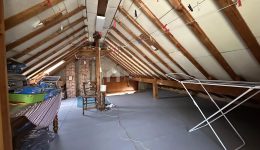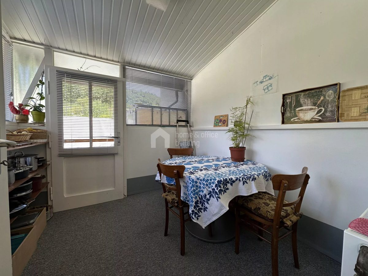 Im Erdgeschoss befinden sich eine moderne, 2015 eingebaute Einbauküche, ein einladender Wohnbereich sowie ein separates WC. Im Obergeschoss erwarten Sie zwei behagliche Schlafzimmer sowie ein funktionales Badezimmer. Ein dritter Raum, der noch fertiggestellt werden muss, bietet zusätzliches Potenzial – ideal als Büro, Gästezimmer oder Elternsuite.
