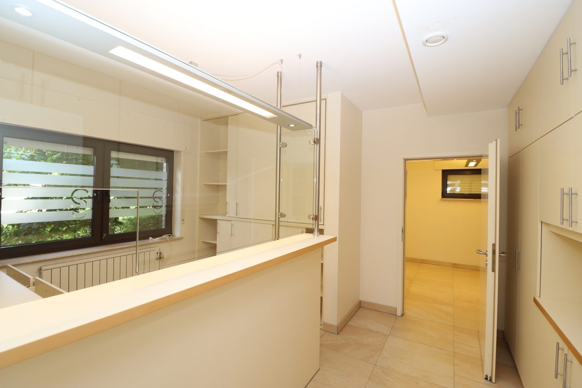 Die Räume sind mit hochwertigen Fußbodenbelägen und Möbeln ausgestattet, sind gepflegt und wirken sehr einladend. Diese Räumlichkeiten eignen sich hervorragend zum Betrieb einer Praxis jeglicher Art, eines Notariats, einer Beratungsstelle (wo Diskretion erforderlich ist), eines Kosmetikstudios, einer Kiné- oder Massagepraxis, usw….