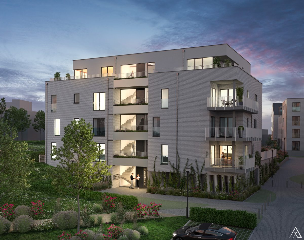 Nach Fertigstellung dieser letzten Phase wird, im Eupener Bergviertel, zwischen Bergkapellstraße und Park Loten, ein neues Wohnviertel „DIE BERGGÄRTEN“ mit 60 Wohneinheiten und einer Geschäftsfläche, die sich auf 3 Residenzen (A, B und C) verteilen, entstanden sein.
