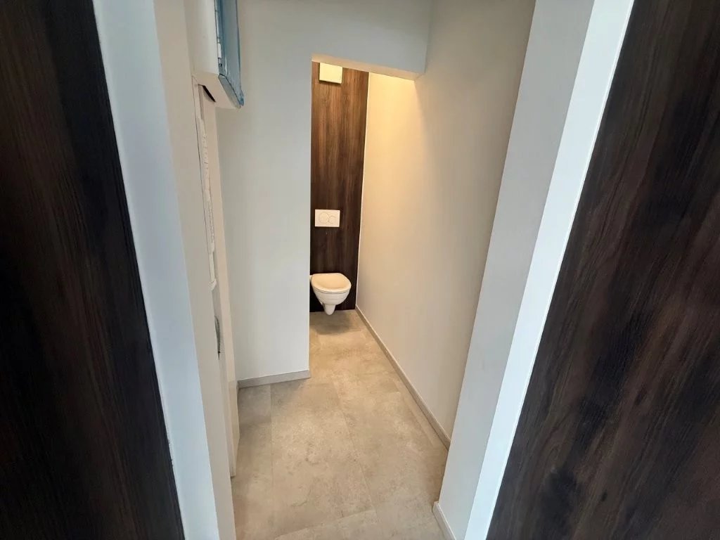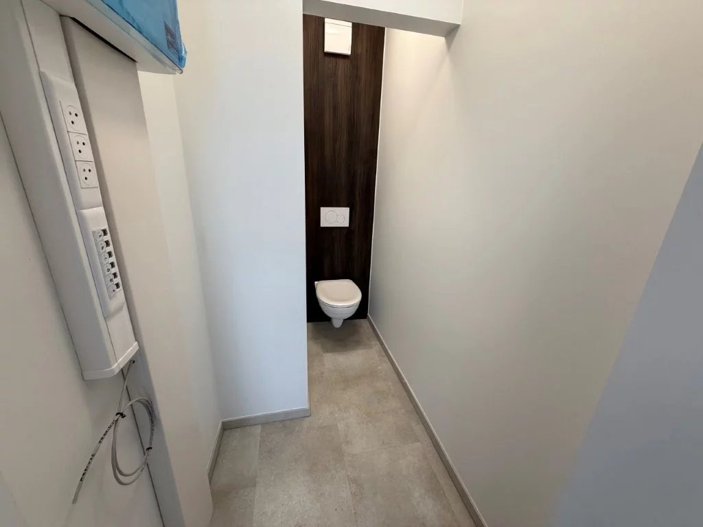 Frisch gestrichen, ist das Objekt mit praktischen Einbauschränken für Stauraum, einer deckenintegrierten Beleuchtung, ideal für den professionellen Gebrauch, sowie mit einem modernen, pflegeleichten Fliesenboden ausgestattet.