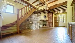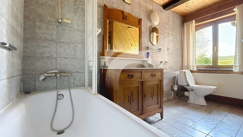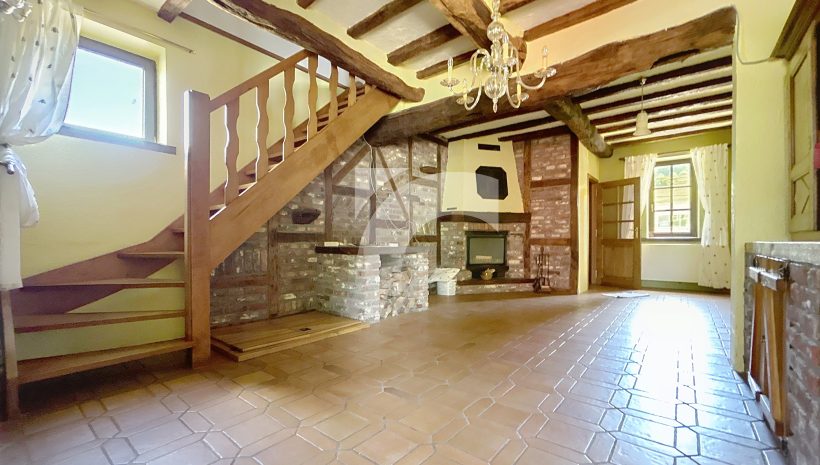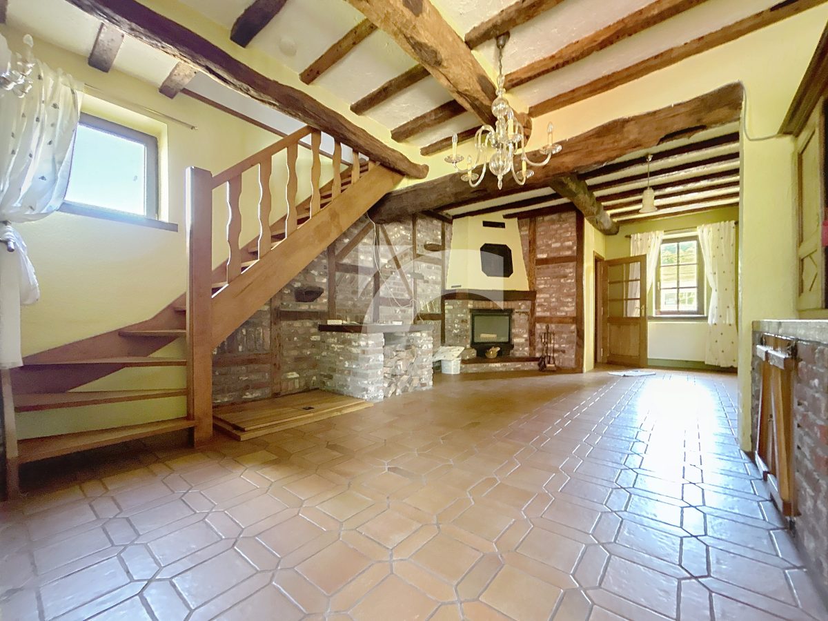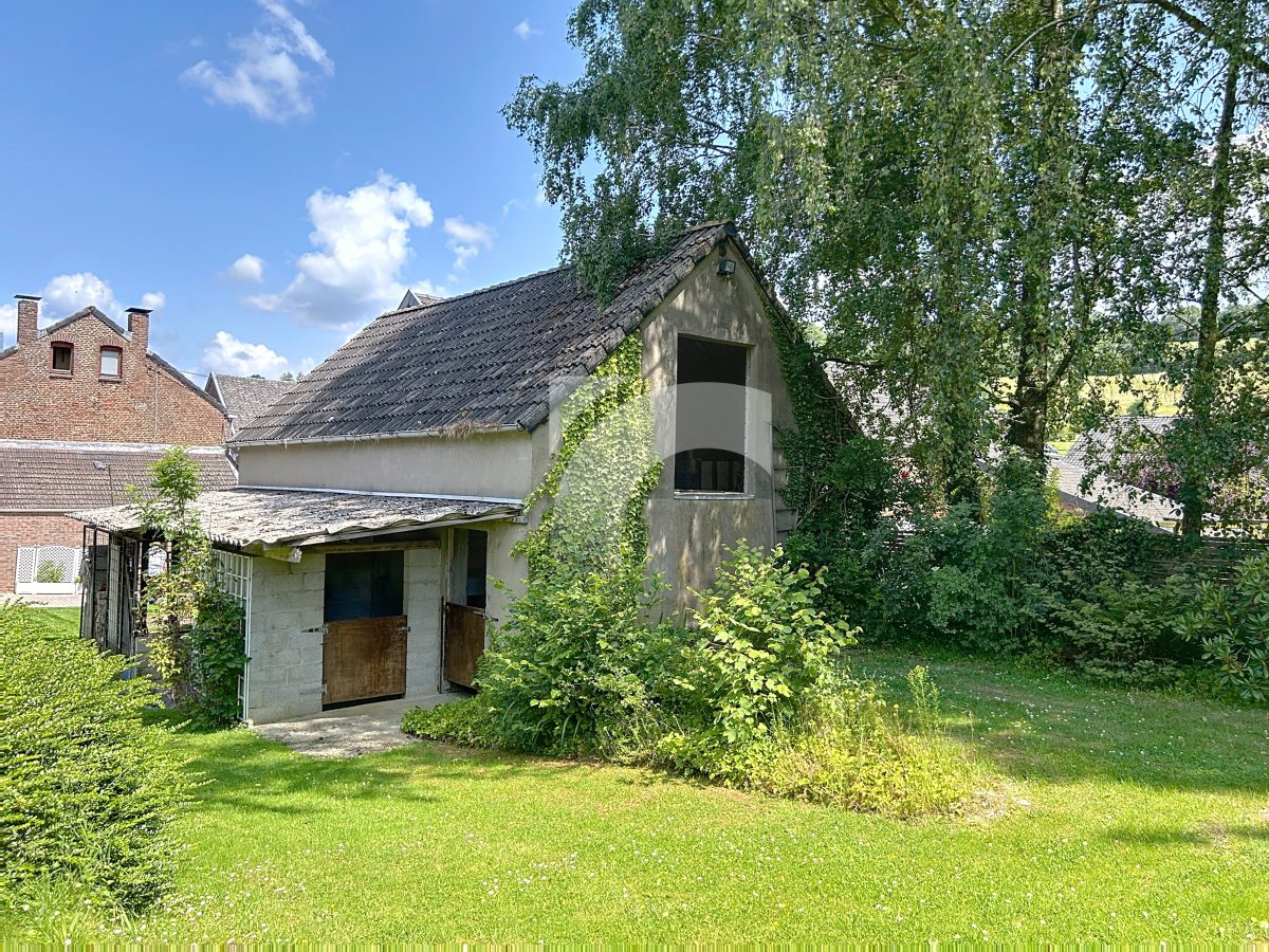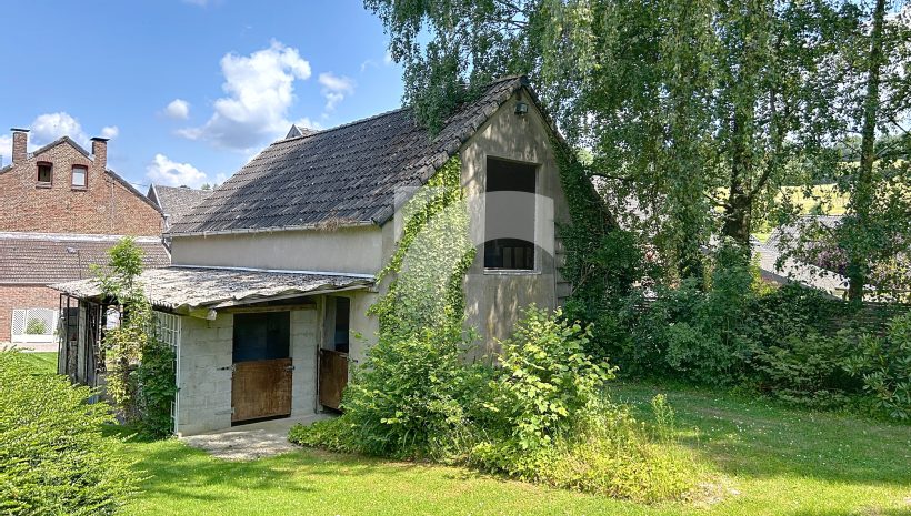 HOMBOURG – Gulpen, 122: Zwischen Henri-Chapelle und Hombourg finden Sie dieses einstige Wohnhaus (Teil eines früheren Bauernhofgebäudes) auf einem schönen großen Grundstück von über 6000 m². Das Haus ist unterkellert und besteht aus einem Eingangsbereich, einem charmanten Wohnzimmer, einer Küche sowie einem Heizungs-/Waschraum mit WC. In den oberen Etagen befinden sich drei Schlafzimmer, ein Badezimmer und ein Abstellraum. Ölzentralheizung und Holzfenster mit Doppelverglasung. Im Außenbereich erwartet Sie ein Gartenbereich mit Teich sowie eine Weide für Ihre Tiere, auf der sich ein kleiner Stall/Box für Pferde oder Esel befindet. Nicht angrenzend steht ein vielseitig nutzbares Gebäude, das derzeit als Werkstatt / Lagerraum dient. Ländliche Umgebung auf der Rückseite und großes Potenzial. Weitere Informationen oder eine Besichtigung vor Ort? Kontaktieren Sie uns!