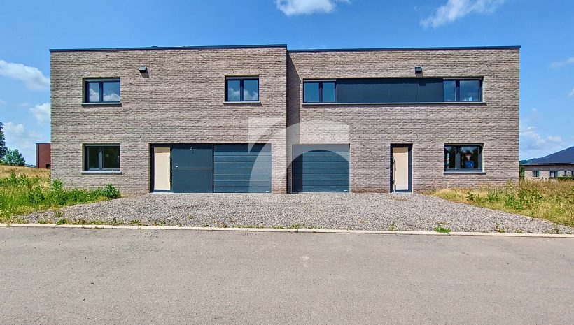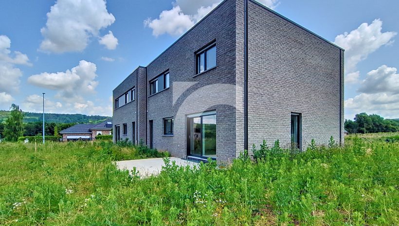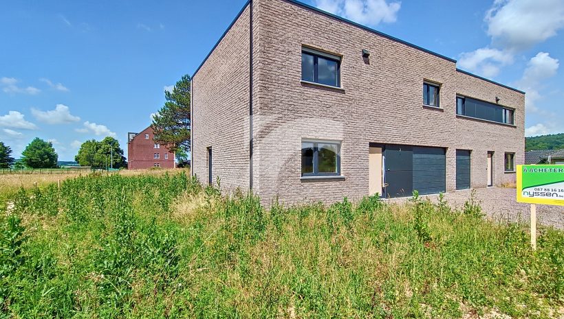 GEMMENICH – Völkerich, 27: Willkommen in Völkerich, einem idyllischen Ort am Dreiländereck BE/DE/NL gelegen und nur etwa 8 Kilometer vom Aachener Klinikum entfernt. In einem neu entstehenden, besonders familienfreundlichen Wohnquartier mit Spielstraße und eigenem Spielplatz erwartet Sie eine moderne Doppelhaushälfte mit zeitgemäßer Architektur und durchdachtem Raumkonzept. Die linke Haushälfte (Los 4) entsteht auf einem Grundstück von ca. 452 m² und bietet insgesamt ca. 224 m² Wohn- und Nutzfläche (siehe Pläne), verteilt auf zwei Vollgeschosse sowie ein voll unterkellertes Untergeschoss.Im Erdgeschoss befinden sich ein einladender Eingangsbereich mit Gäste-WC, eine offene Küche, ein großzügiger Wohn- und Essbereich mit Zugang zur sonnigen Süd-West-Terrasse sowie eine praktische Waschküche, die ebenfalls in den Garten führt. Die Garage ist direkt mit dem Keller verbunden und bietet zusätzlichen Komfort im Alltag. Im Obergeschoss erwarten Sie vier geräumige Schlafzimmer, ein modernes Badezimmer, ein separates WC sowie ein Abstellraum. Das Kellergeschoss bietet mit ca. 72 m² viel Platz für Stauraum, Hobbys oder Technikflächen. Das Haus überzeugt durch eine hochwertige und nachhaltige Ausstattung: Energieeffizienzklasse PEB A++, Kunststofffenster mit Dreifachverglasung und Rollläden, ein kontrolliertes Lüftungssystem Typ D, eine Luft-Wasser-Wärmepumpe in Kombination mit Fußbodenheizung (außer in Garage, Waschküche und Keller), sowie eine Photovoltaikanlage sorgen für einen zukunftssicheren und umweltfreundlichen Betrieb. Die komplette Sanitärausstattung sowie Bodenbeläge in allen Wohnräumen (außer Garage, Waschküche und Keller) sind im Kaufpreis enthalten. Der Kaufpreis versteht sich zuzüglich Kaufnebenkosten. Gerne informieren wir Sie persönlich über dieses attraktive Neubauprojekt und beantworten Ihre Fragen – wir freuen uns auf Ihre Kontaktaufnahme.