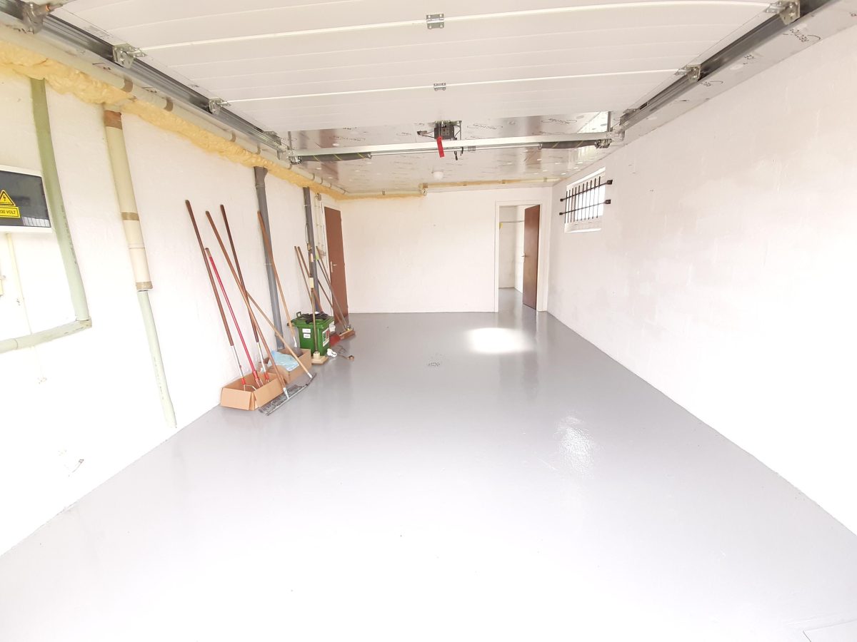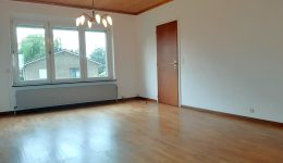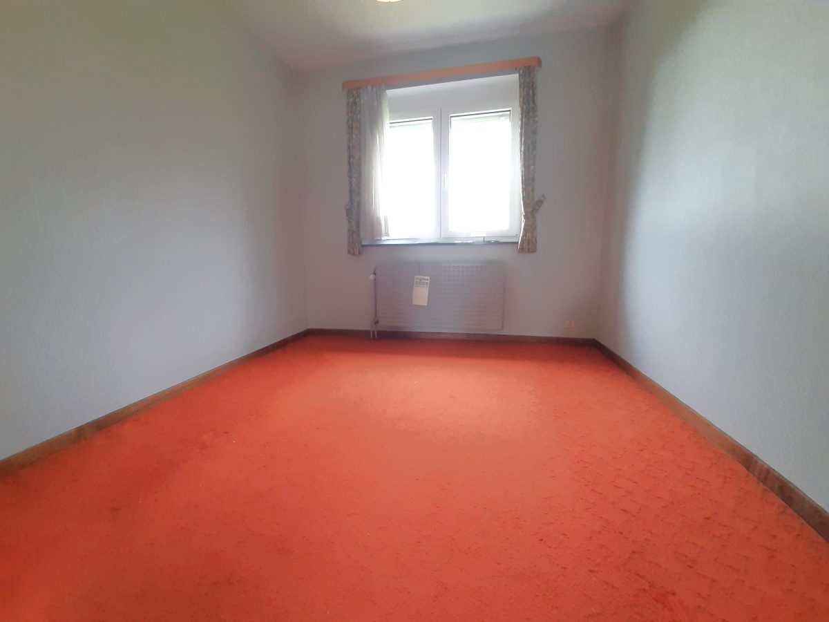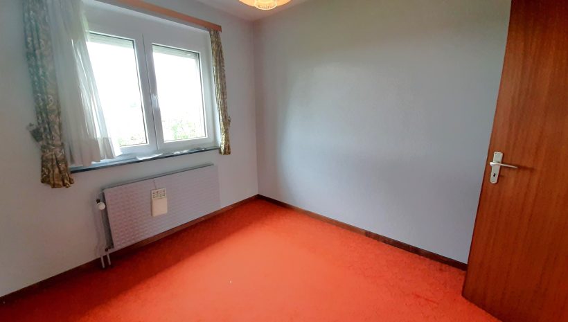 Sehr schönes und gut unterhaltenes Reiheneckhaushaus im Hochparterrestil. Auf dem Erdgeschoss befindet sich der großzügige Eingangsbereich mit Gäste-WC sowie ein dahinter liegendes Gästezimmer, das auch als Büro oder Schlafzimmer genutzt werden kann. Neben dem Eingangsbereich geht es zur grossen Garage, sie ist über 6 m lang und bietet somit auch genügend Platz für größere Wagen. Eine Waschküche, die sich hinter der Garage befindet hat einen direkten Zugang zur Terrasse und zum Garten. Auf der Etage führt der Nachtflur zum Wohn- und Esszimmer, von dem man in die Küche gelangt. Hinter dem Wohnzimmer befindet sich ein Schlafzimmer, das ebenfalls als Büro genutzt werden könnte. Der Nachtflur bietet des weiteren Zugang zu einem zusätzlichen großem Schlafzimmer sowie einem Bad mit WC, Wanne und Waschtisch. Der Speicher ist begehbar und würde noch die Möglichkeit bieten, ein weiteres Zimmer einzurichten. Gaszentralheizung mit Niedrigenergiekessel. Schöner Fernblick. Es wurden neue Fenster und eine neue Heizung eingebaut, neuer Anstrich. Das ganze Haus ist energetisch voll saniert worden, die Aussenwände wurden isoliert, die Garagendecke separat isoliert und wie gesagt neue Fenster und Gasheizung. Dies erklärt auch den guten Energiewert der Klasse B. Garage mit elektischem Sektionaltor, Rollläden, überall Betondecken, Parkettboden in Living und Nachtflur. Die Immobilie liegt in einer ruhigen Parzellierung ohne Durchgangsverkehr und doch ganz in der Nähe des Zentrums.