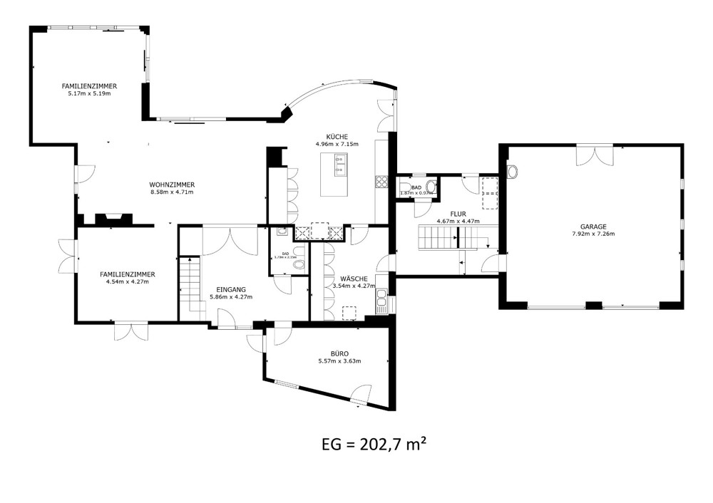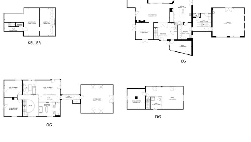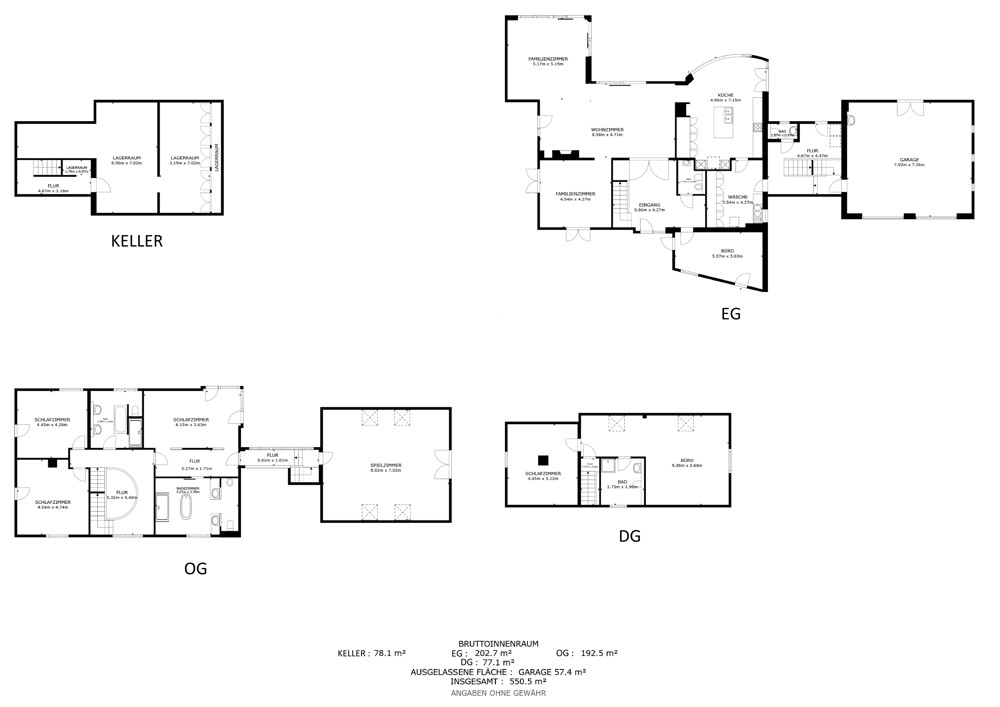 – Zwei Doppelgaragen (1 Doppelgarage m. integriertem Gartenhaus 125 m²)
