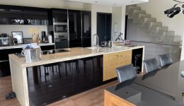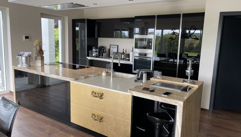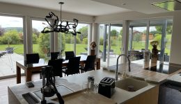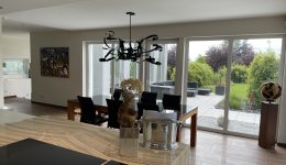 Das Erdgeschoss mit Entrée, Wohnzimmer, Essbereich, Küche, Hauswirtschaftsraum, Garage und Gäste-WC besticht jedoch nicht nur durch sein Design, sondern gerade auf dieser Ebene wurde auch viel Wert auf Praktikabilität und Komfort für den Alltag gelegt.