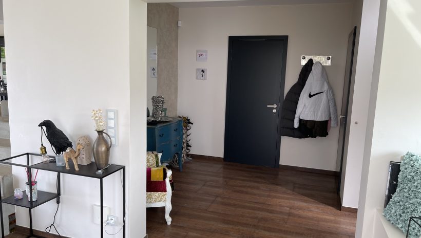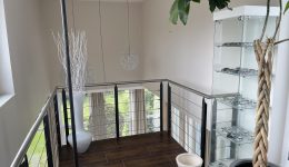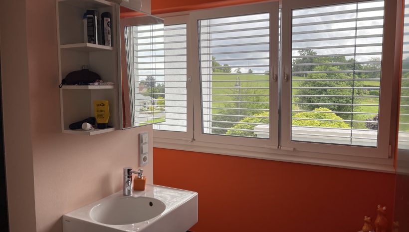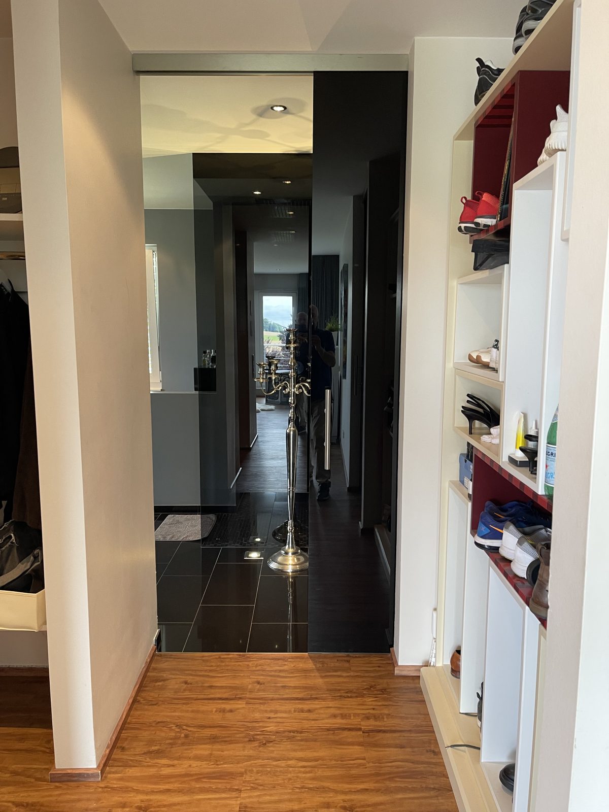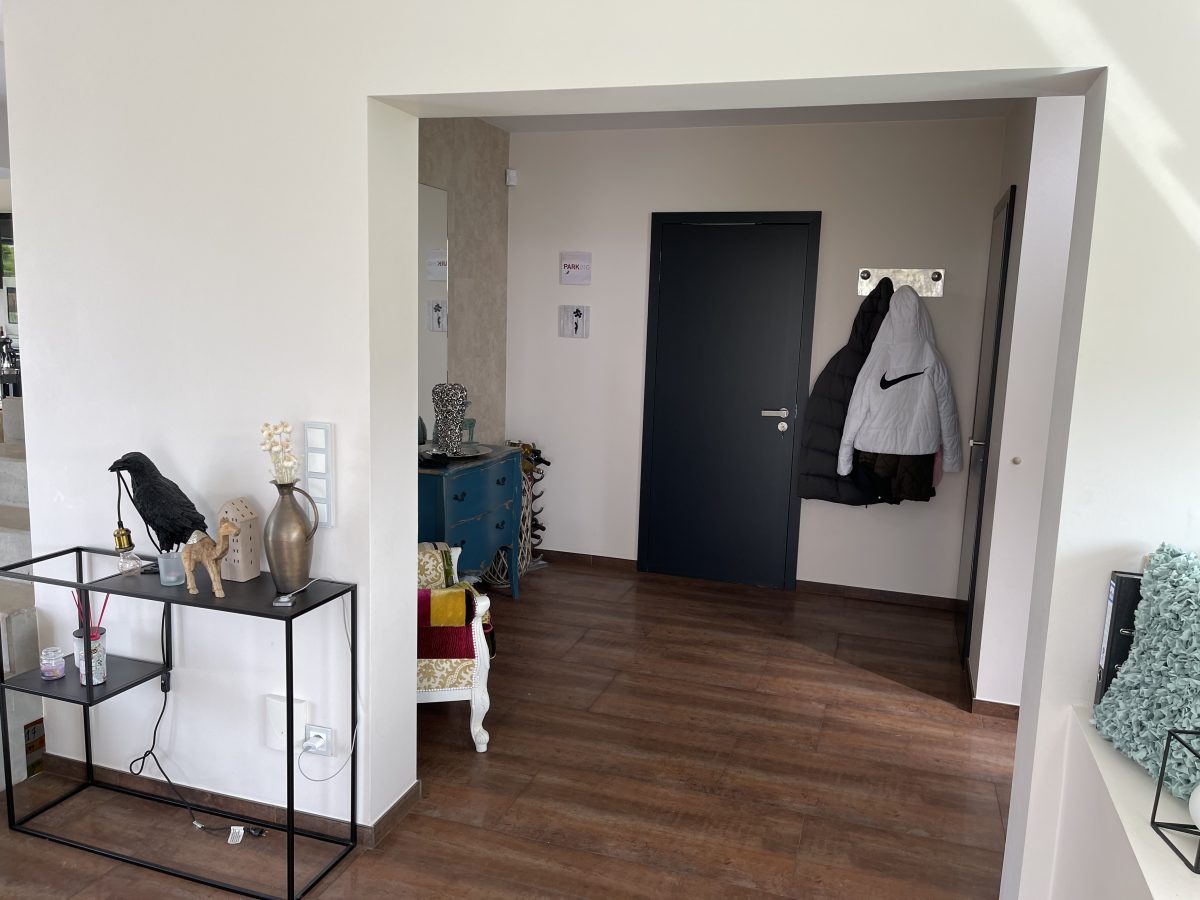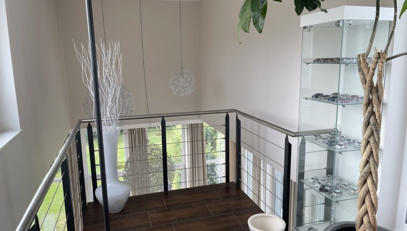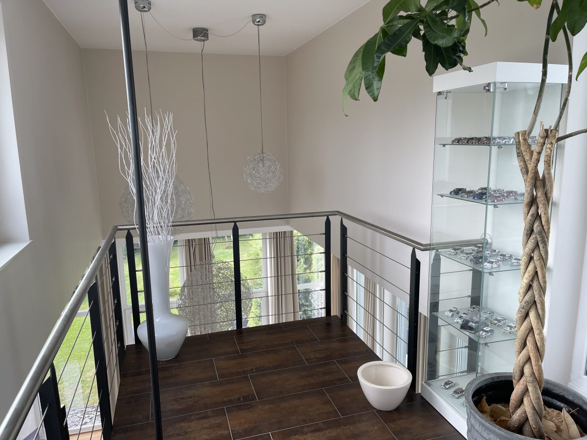 Weiterhin gibt es auf dieser Ebene ein Gästezimmer, ein weiteres Zimmer, ein Gäste-Bad und eine Galerie zum Wohnzimmer, die als Büro genutzt werden kann. Die große Garage, bietet Platz für 3 PKW.