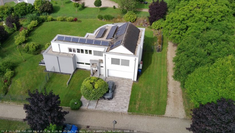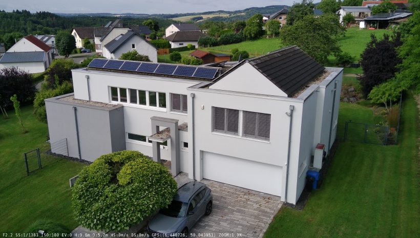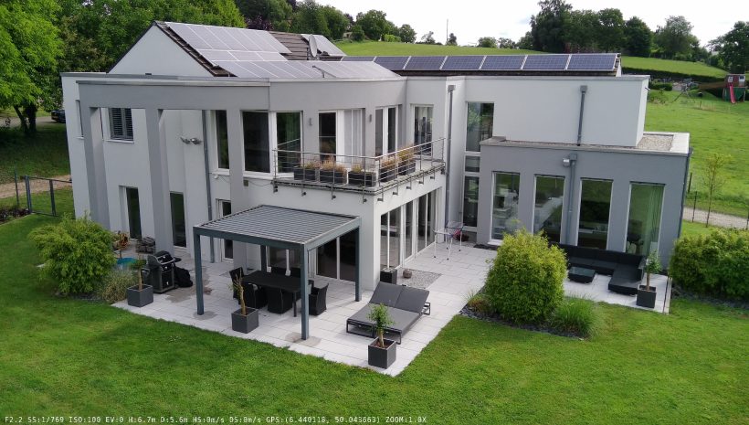 Im Keller gibt es zwei Räume für Heizung und Haustechnik und einen großen Hobbyraum. Die Villa wird mit einer Wärmepumpe beheizt und ist mit einer Photovoltaik-Anlage ausgestattet.