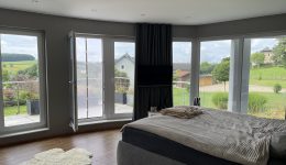 Absolute Privatsphäre gewährt der große, separate Elterntrakt im Obergeschoss mit hellem, lichtdurchflutetem Schlafzimmer, Ankleideraum, Bad en Suite mit Sauna, und einem eigenen Balkon mit weitem Blick.