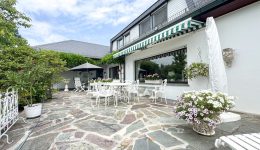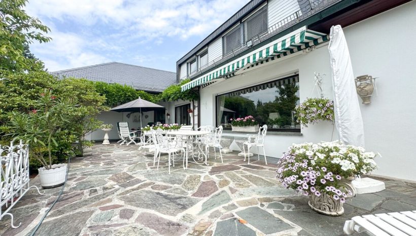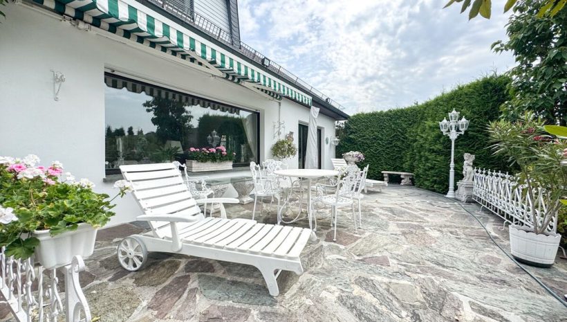 Im Souterrain befindet sich die Einliegerwohnung mit eigenem Zugang, zwei Außenterrassen und Gartenbereich.